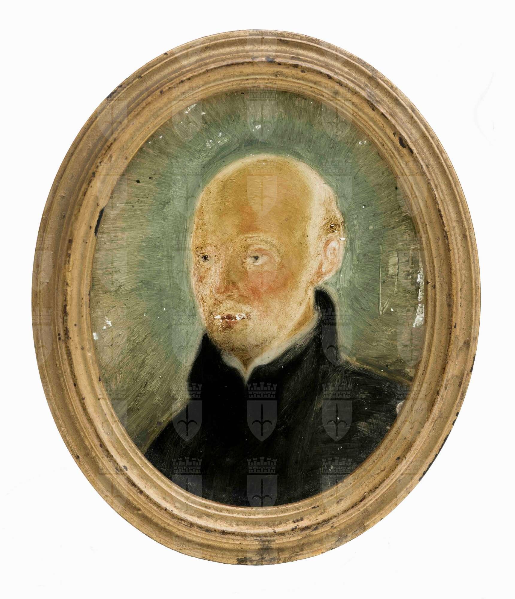 Il quadretto, pervenuto nelle collezioni civiche attraverso il legato Maria Piacere (1940), è stato registrato dapprima come un ritratto di prelato, poi come Alfonso de Liguori. L’effige sembra piuttosto doversi riconoscere in un’immagine devozionale di Sant’Ignazio di Loyola.
