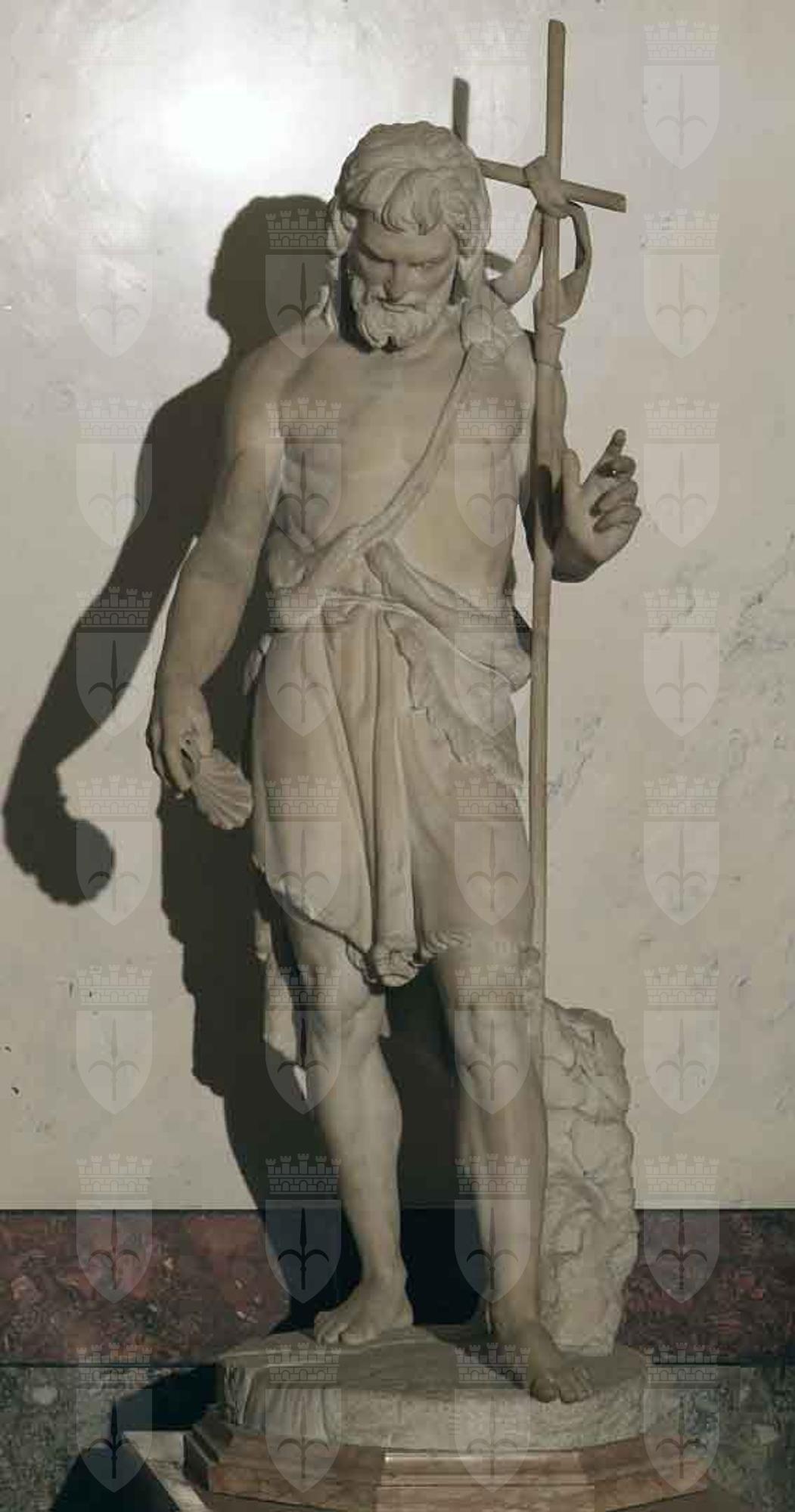 Sono inventariate nelle collezioni museali due versioni di quest’opera, una versione in marmo donata dagli eredi dell’artista nel 1955, e un bozzetto in gesso entrato a far parte delle collezioni museali dal 1873, anno in cui fu acquisito dal neocostituito Museo Revoltella. In questo caso si arrivò al risultato dopo una lunga trattativa iniziata qualche anno prima, nel 1870, quando il fratello dello scultore propose la vendita dell’opera in questione per la somma di 1000 fiorini, cifra che fu corrisposta solo in parte. Le due opere presentano delle forti analogie: è pressoché identica la figura del San Giovanni, con le medesime fattezze fisiche, con la posizione della gamba sinistra posta in avanti quasi pronta per incedere e la testa inclinata sul petto. E se nella versione in gesso il Battista è raffigurato in atto di benedire, nell’altra in marmo reca in mano una conchiglia e un bastone a croce. Firmato e datato «Roma 1855», il gesso risale al periodo in cui l’artista fu accolto nello studio del Trani nella capitale e vinse il primo premio di scultura all’Accademia di S. Luca. Tre anni dopo gli fu conferita la grande medaglia della Congregazione artistica dei Virtuosi al Pantheon mentre di ritorno a Trieste, vi aprì uno studio. Eseguì un gran numero di busti, statue allegoriche e monumenti funerari per le maggiori famiglie triestine (e resta testimonianza inoltre di richieste, soddisfatte, da Parigi e da Lubiana).