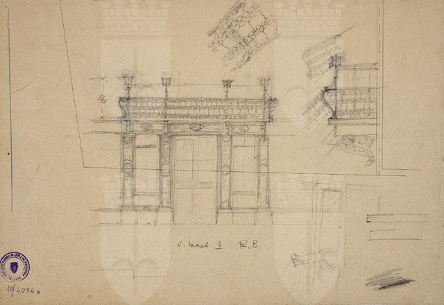 Trieste. Palazzo di via Machiavelli 3. Progetto per portone e poggiolo