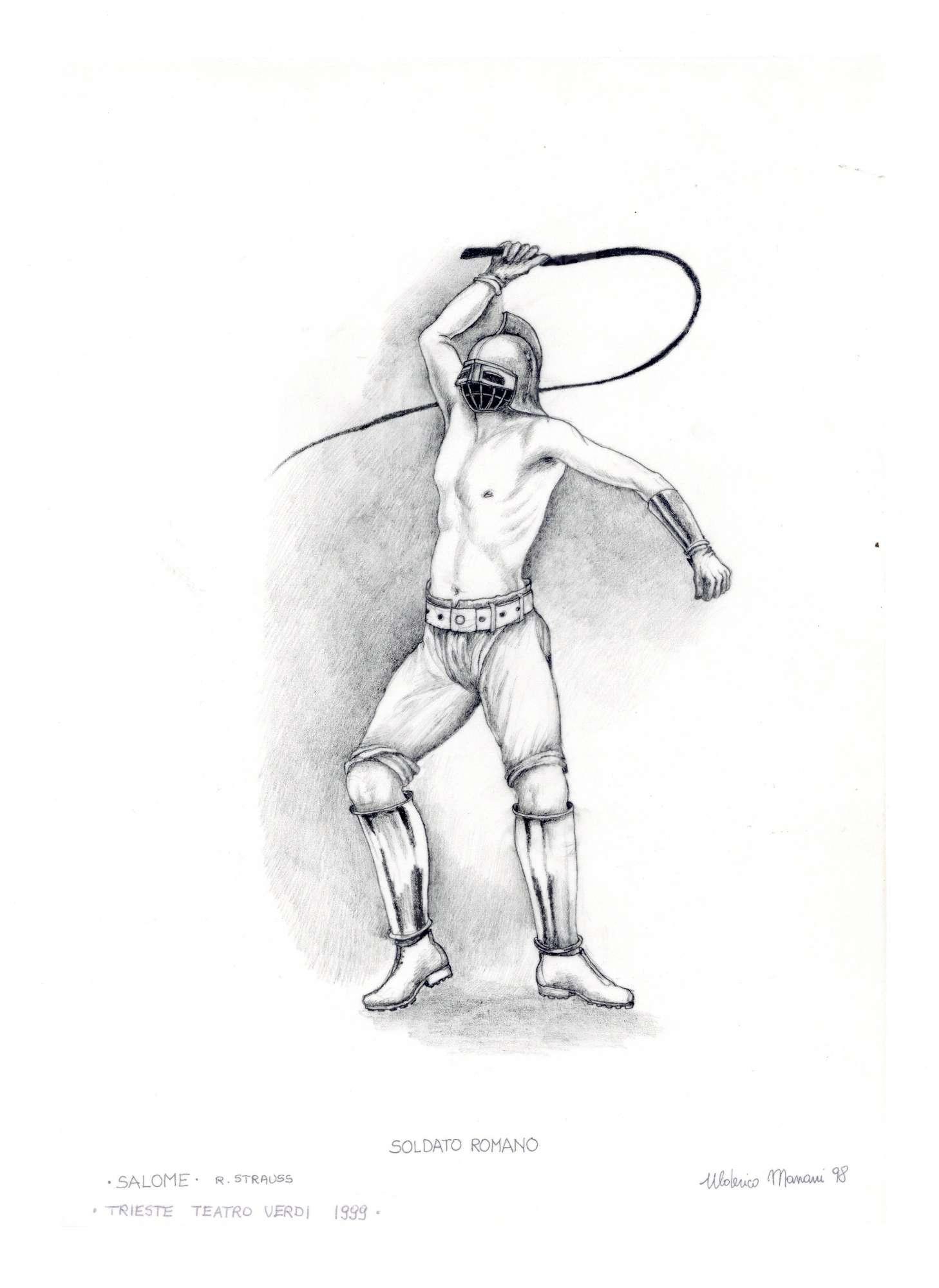 Salomè di Richard Strauss. Personaggio: soldato romano. A torso nudo indossa pantalone al ginocchio e protezione ai polsi e tibie. Sul capo un elmo che copre il volto. Agita un frusta