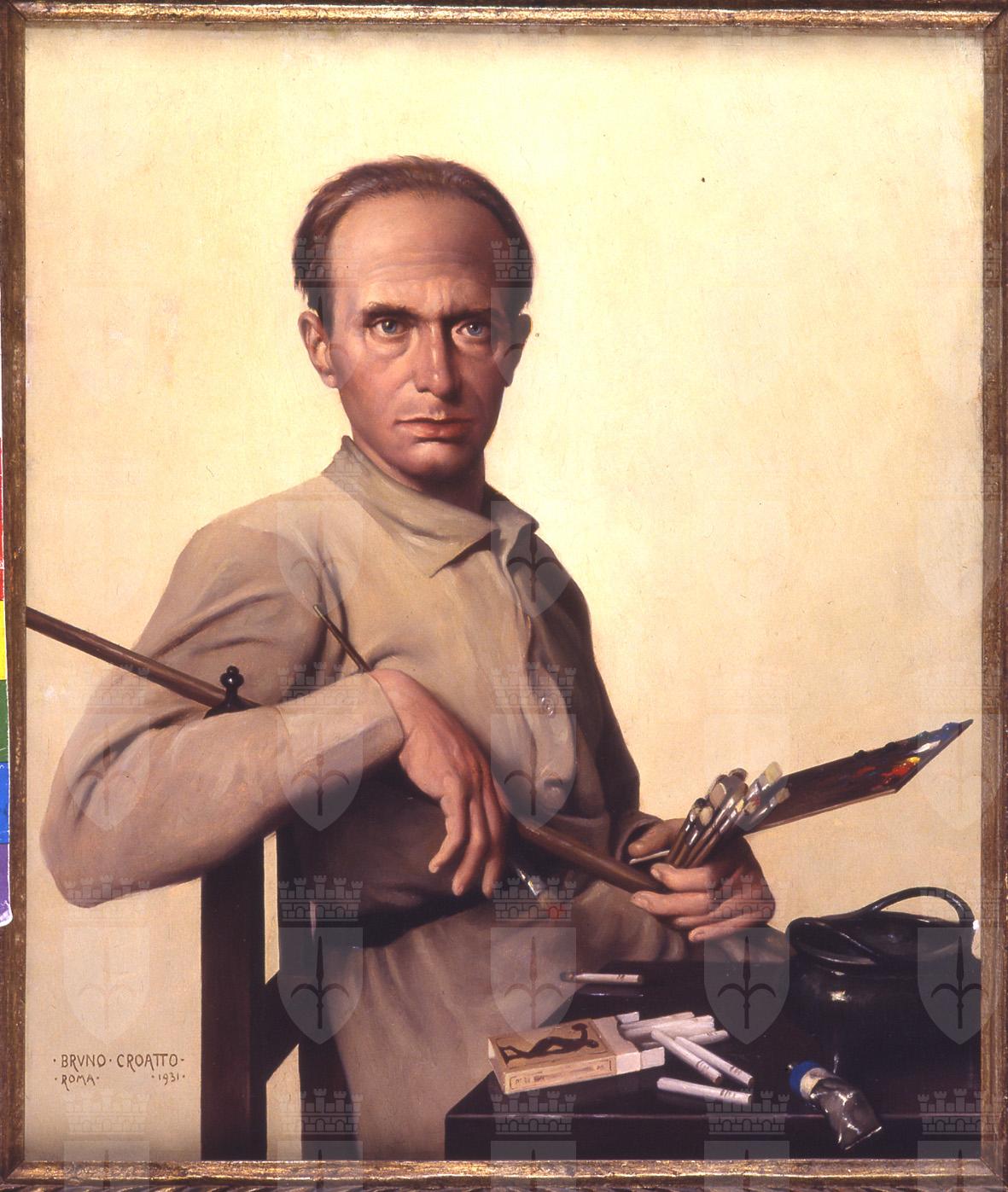 La figura del pittore è ritratta nell'atelier e circondata da una serie di oggetti caratteristici che permettono di classificare il dipinto nella tipologia dell'autoritratto "professionale". Altro: Autoritratto nello studio