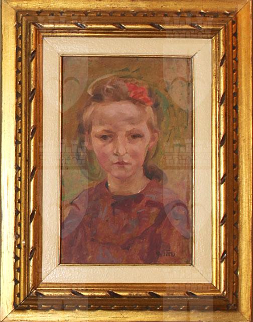 Ritratto di bambina con veste rossa e fiore sui capelli