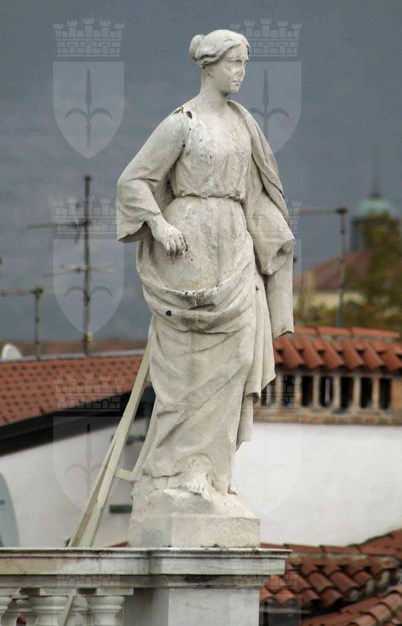 Le sei statue poste a coronamento di Palazzo Revoltella furono completate sicuramente entro il luglio del 1857, quando vengono citate per la prima volta sulla stampa locale. Nel progetto firmato da Friedrich Hitzig per Palazzo Revoltella del 1853 sono previste, sull’attico del fronte principale, sei statue dall’iconografia non chiaramente identificabile (Hitzig 1853), mentre nel medesimo progetto pubblicato in volume, nel 1864 le statue sono quattro e rappresentano le stagioni (Hitzig 1864). La realizzazione finale, affidata a Bosa, si indirizza invece ad una programmatica manifestazione della “morale borghese” di Pasquale Revoltella, in cui vengono celebrati i fattori che concorsero alla sua fortuna: Commercio, Industria, Ingegno e Navigazione sul fronte principale e Calcolo ed Economia sui prospetti laterali (rispettivamente di via Cadorna e via Diaz). L’identificazione di tali allegorie, spesso confuse tra loro nelle schede inventariali del Museo, è possibile grazie a due fogli autografi conservati al Museo Correr di Venezia (inv. cl. III n. 2892 e 2893), nei quali ciascuna allegoria è accompagnata da una didascalia che la identifica. Le sculture, improntate a un diligente classicismo, appaiono estremamente danneggiate dagli agenti atmosferici e mutile di alcuni attributi. Il Commercio ha in capo il petaso alato di Mercurio, ma risulta privo del caduceo (presente nel disegno del Correr), che pare di scorgere nella tempera di Alberto Rieger del 1865 raffigurante Palazzo Revoltella (Possamai 2022, p. 46), l’Industria tiene in mano un alveare (anziché la falce raffigurata nel citato disegno) e un martello, l’Ingegno è caratterizzato da penna (di cui ora è mutilo, ma che è visibile nelle schede inventariali degli anni Sessanta), libro e locomotiva (non prevista nel disegno del Correr), la Navigazione appare mutila degli attributi (previsti dal disegno del Correr) della bussola, visibile ancora nelle schede inventariali degli anni Sessanta, e dell’àncora, che si scorge ancora fino al 1913 circa in una foto di Francesco Penco. Sui prospetti laterali sono posti il Calcolo, che srotola un cartiglio, e l’Economia, che regge una borsa piena di denari. Si segnala che nella Rassegna di pittura e scultura dell'Ottocento a Trieste del 1937 è stata esposta una Navigazione di Francesco Bosa di proprietà del Museo Revoltella, di cui si sono perse le tracce. (Rassegna 1937, p.9)