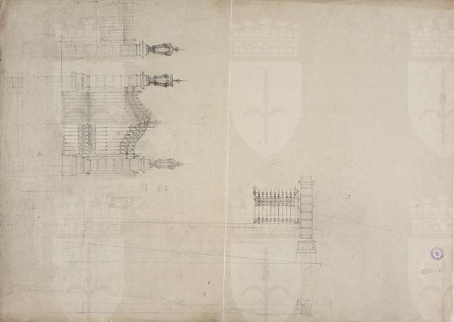 Il disegno in esame appartiene al "Progetto per l'edificio della Riunione Adriatica di Sicurtà", cfr. schede CMSAOAR10_4176-CMSAOAR10_4206. Agli inizi del Novecento il direttore generale della Riunione Adriatica di Sicurtà, Adolfo de Frigyessy, e suo figlio Arnoldo, decisero di realizzare una nuova sede di rappresentanza per la compagnia a Trieste. Acquistato un ampio lotto già edificato tra la piazza Nuova e le vie S. Caterina, S. Antonio e il Corso, e demolite le precedenti costruzioni, indissero nel luglio 1909 un concorso internazionale a inviti per la progettazione di un nuovo palazzo. Oltre a Ruggero e Arduino Berlam, vi parteciparono gli architetti Ignác Alpar, Ludwig Baumann, Max Littmann, Luigi Broggi, Giacomo Zamattio, Giorgio Zaninovich, Enrico Nordio e Ludovico Braidotti. Nel bando si richiedeva che il palazzo contenesse un semi-sotterraneo, un piano elevato, un ammezzato, tre piani superiori più un sottotetto; ma non si davano indicazioni sulla distribuzione interna degli ambienti e su requisiti tecnologici. Nel novembre 1909 la giuria selezionò, tra i progetti pervenuti, quelli di Alpar, Zammattio e dei Berlam (Lettis in Rovello 2007, p. 312) per la seconda fase del concorso. Tuttavia Zammattio e Alpar non si presentarono, cosicché lo studio Berlam, unico rimasto fra i selezionati, ricevette l’incarico. Seguì una fase in cui Ruggero e Arduino Berlam vennero costantemente seguiti dalla committenza nell’elaborazione dell’assetto generale e di ogni minuto dettaglio dell’edificio. La direzione della compagnia assicurativa voleva che lo stabile fosse destinato per metà a sede della società, cioè verso la Piazza Nuova (odierna Piazza della Repubblica); mentre il lato opposto, verso il Corso, fosse adibito a negozi, al pianterreno, e abitazioni. Anche il piano prospiciente la via S. Antonio (attuale via Dante) era riservato agli esercizi commerciali. Il progetto definitivo dei Berlam, datato 2 dicembre 1910, venne approvato dal Magistrato civico il 12 gennaio 1911; il permesso di fabbrica è del 28 giugno 1911. L’Impresa Carlo Bonetti costruì il palazzo, che fu inaugurato il 7 aprile 1914. Si tratta di un capolavoro del tardo eclettismo europeo, in cui si recuperano gli stilemi della tradizione architettonica del tardo Cinquecento. Nel palazzo, articolato in cinque piani, gli architetti si sono rifatti all’architettura “di facciata, ai palazzi italiani del secolo XVI” (Berlam cit. in Lettis in Rovello 2007, p. 313, nota 9). Quanto al disegno in esame, esso illustra, al recto, il prospetto laterale dell'edificio prospiciente la via Santa Caterina. Mostra affinità compositive con i disegni CMSAOAR10_4202, dedicato all'affaccio su via Sant'Antonio (attuale via Dante), e con CMSAOAR10_4196, relativo alla facciata principale. Come messo in luce dalla critica, tra queste facciate vi è una continuità di soluzioni formali, che contribuisce all’unitarietà tra le due metà dell’edificio, ossia alla parte destinata a sede sociale e a quella da destinare a locazione commerciale. Un altro disegno progettuale per la facciata su via Santa Caterina si conserva presso l'Archivio storico Allianz-Ras (cfr. Madotto 2008, p. 96). Il disegno sul verso è da riferirsi alla progettazione del cancello per la villa Lazarovich-Vianello di via Tigor 23, la cui esecuzione si data al 1911 (Pozzetto 1999, p. 246).