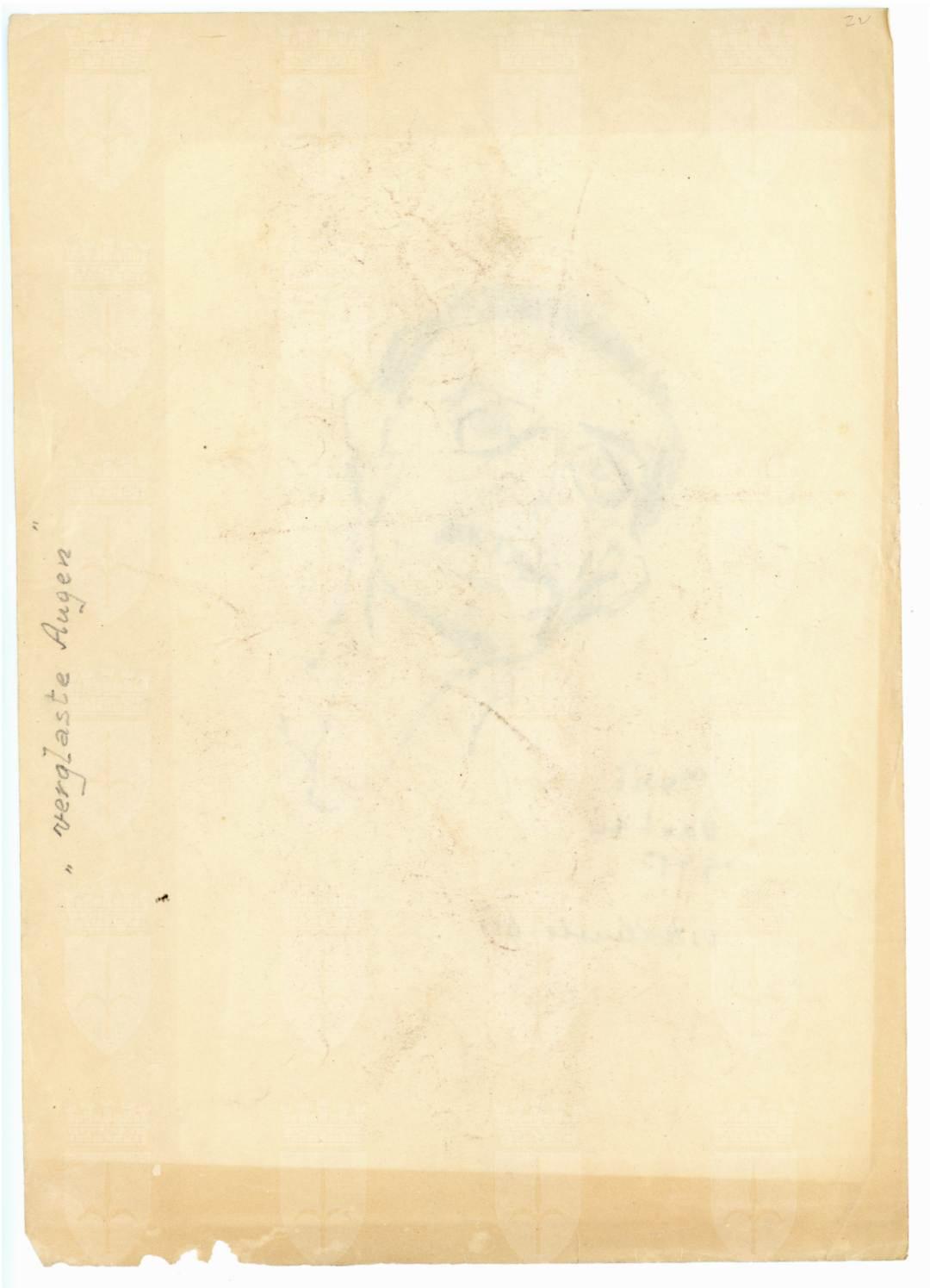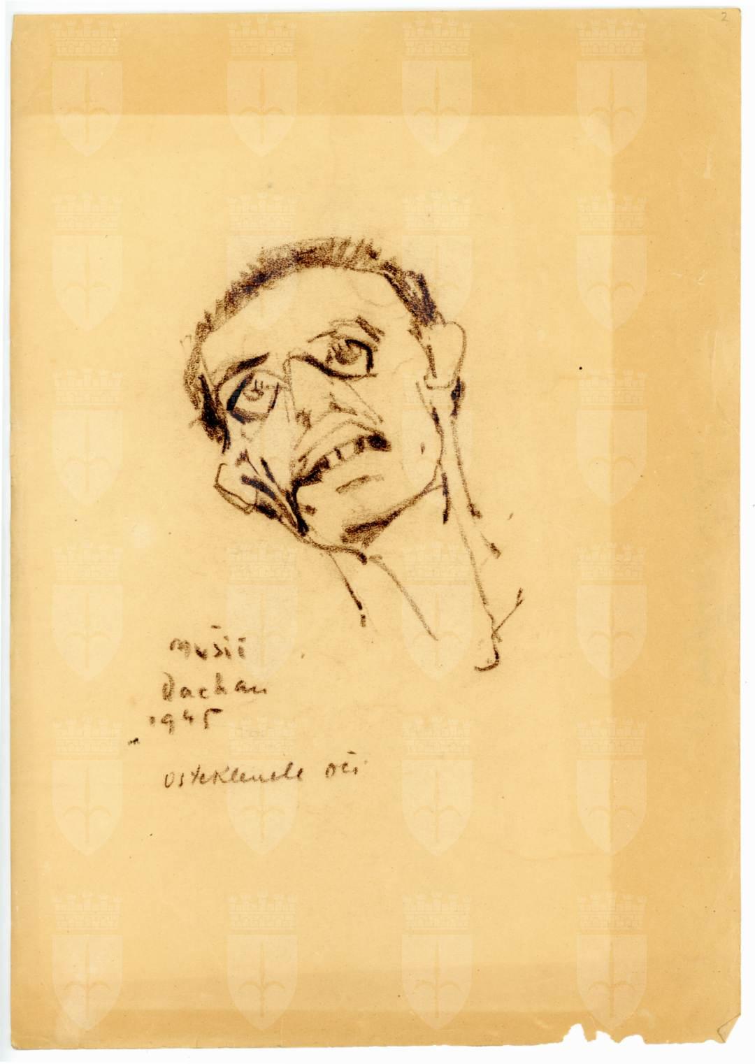 Sul recto sono presenti la firma, il luogo e la data: Mušič Dachau 1945; Sul verso è presente una nota manoscritta a matita “verglaste Augen” (Occhi vetrificati)