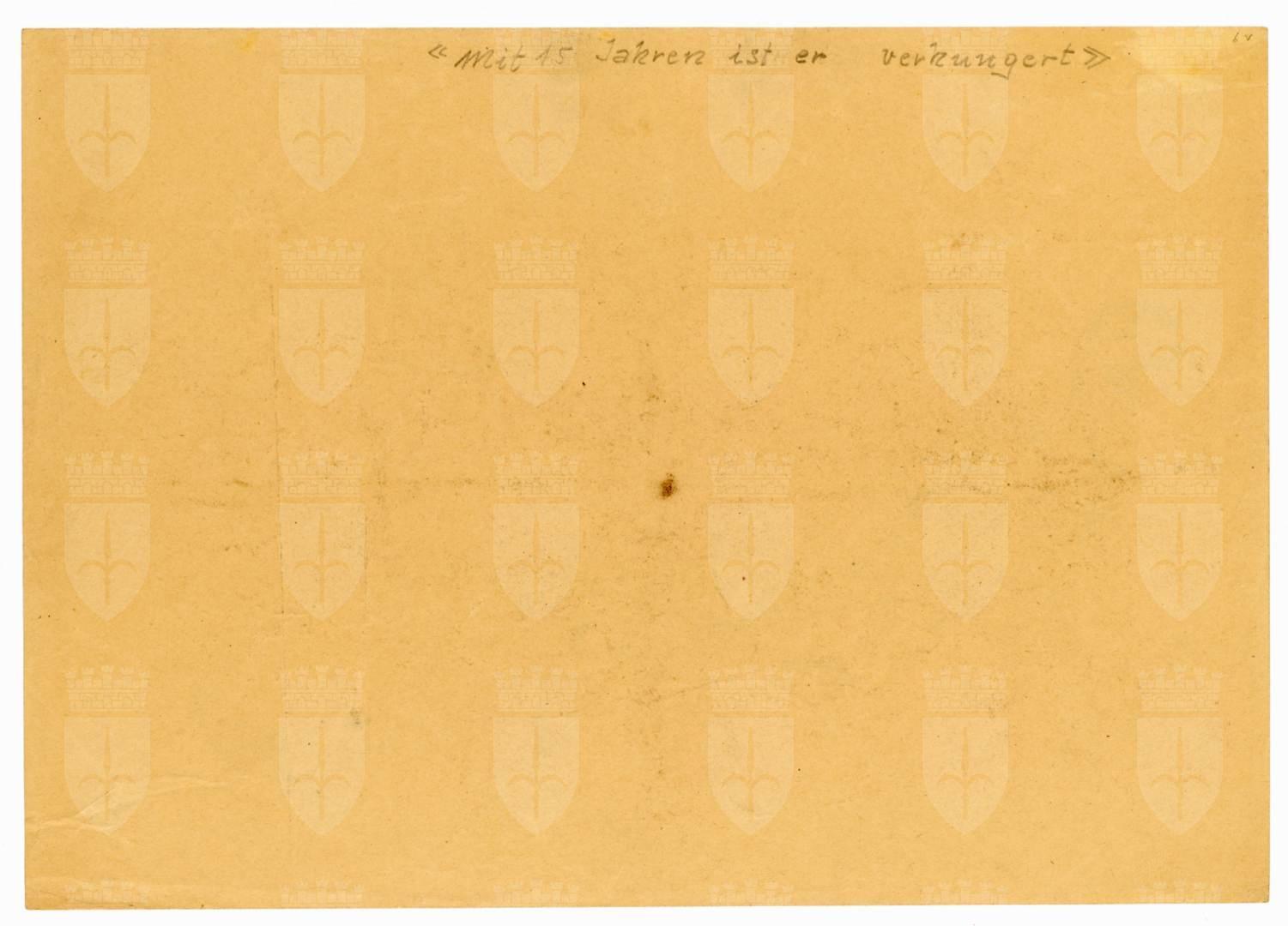 Sul recto è trascritta la firma, il luogo e la data: Mušič Dachau 1945 Sul verso vi è una nota manoscritta a matita “Mit 15 Jahren ist er verhungert” (A 15 anni è morto di fame)