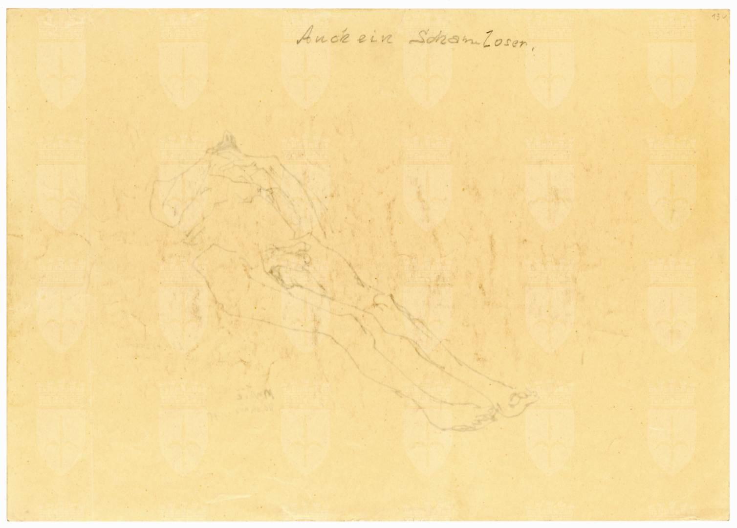 Sul recto è trascritta la firma, il luogo e la data: Mušič Dachau 1945. Sul verso presenta una nota manoscritta a matita “Auch ein Schamloser” (Un altro senza pudore)