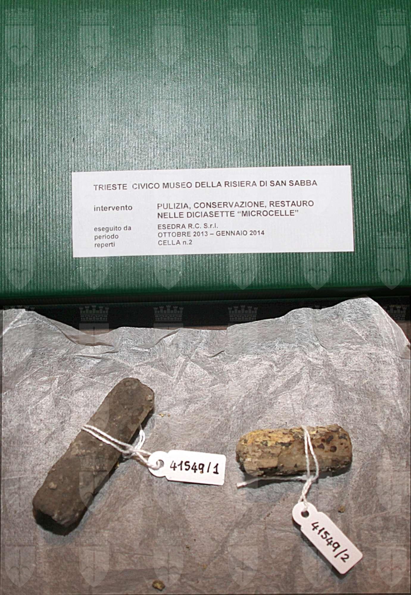 Fanno parte di un nucleo di oggetti rinvenuti nelle vasche della celletta numero 2 della Risiera di San Sabba nel dicembre 2013 nel corso di un intervento di pulizia, manutenzione e restauro.
