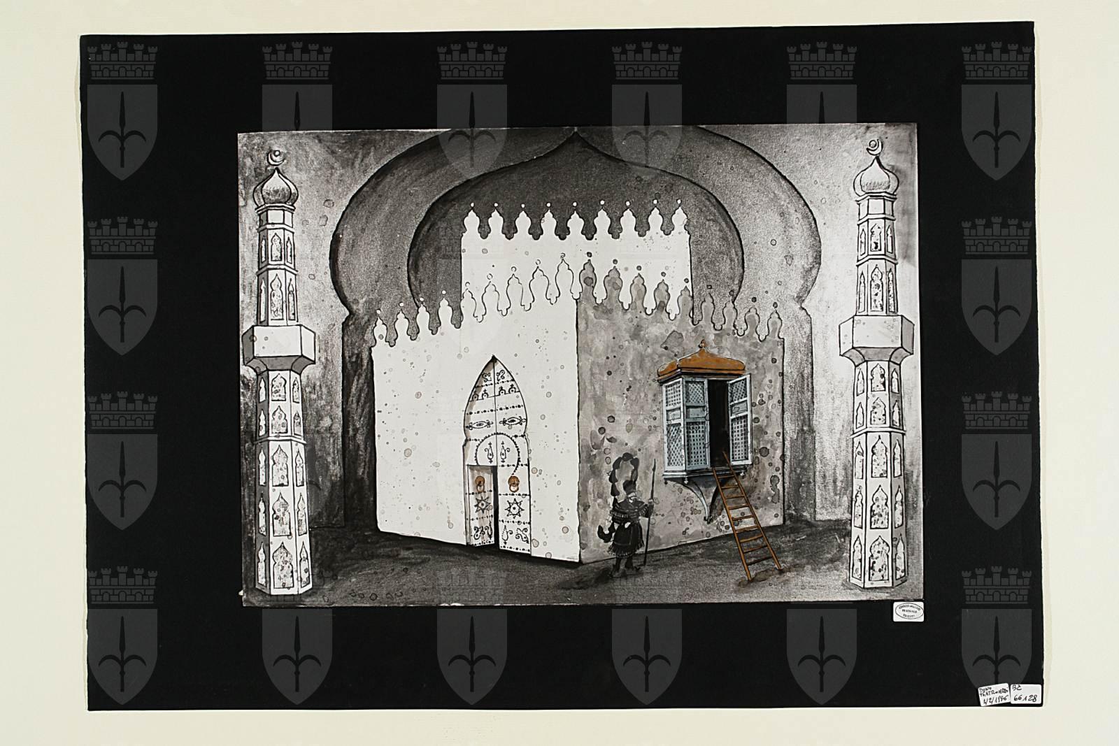 Bozzetto scenografico per Il Ratto dal serraglio, opera di Wolfgang Amadeus Mozart, prima rappresentazione 28 gennaio 1976, Teatro Comunale Giuseppe Verdi Trieste, regia di Filippo Crivelli