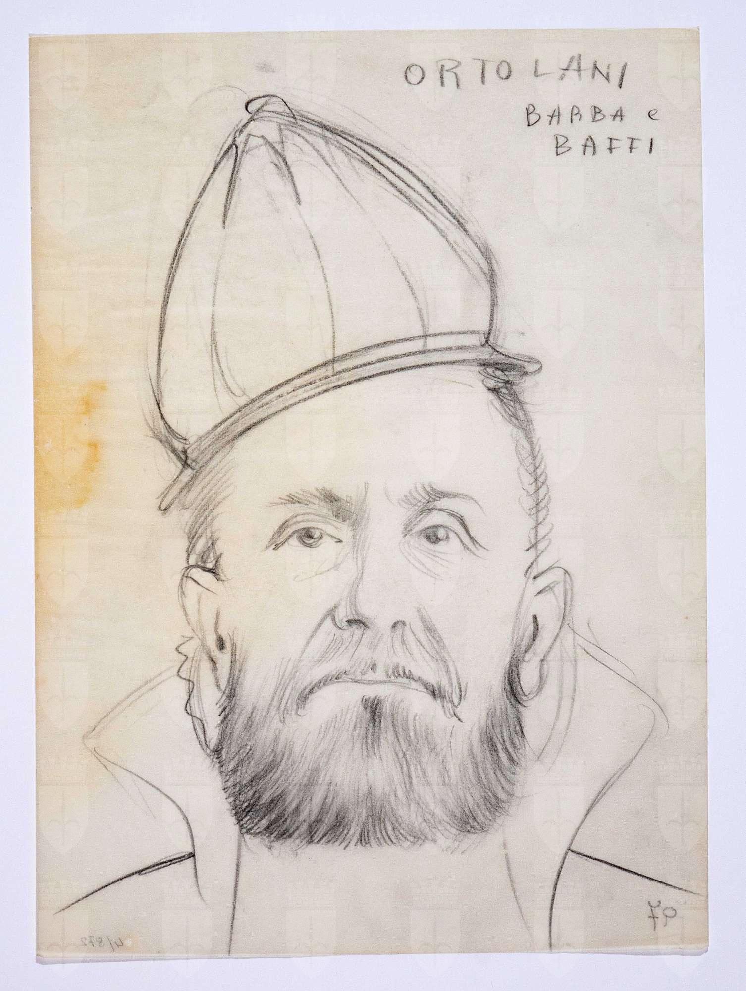Il gioco dei potenti, libero adattamento di Giorgio Strehler da Enrico VI, dramma storico di William Shakespeare, in 15 atti e 2 giornate. Ritratto di testa maschile di fronte con copricapo alto, barba squadrata e baffi.