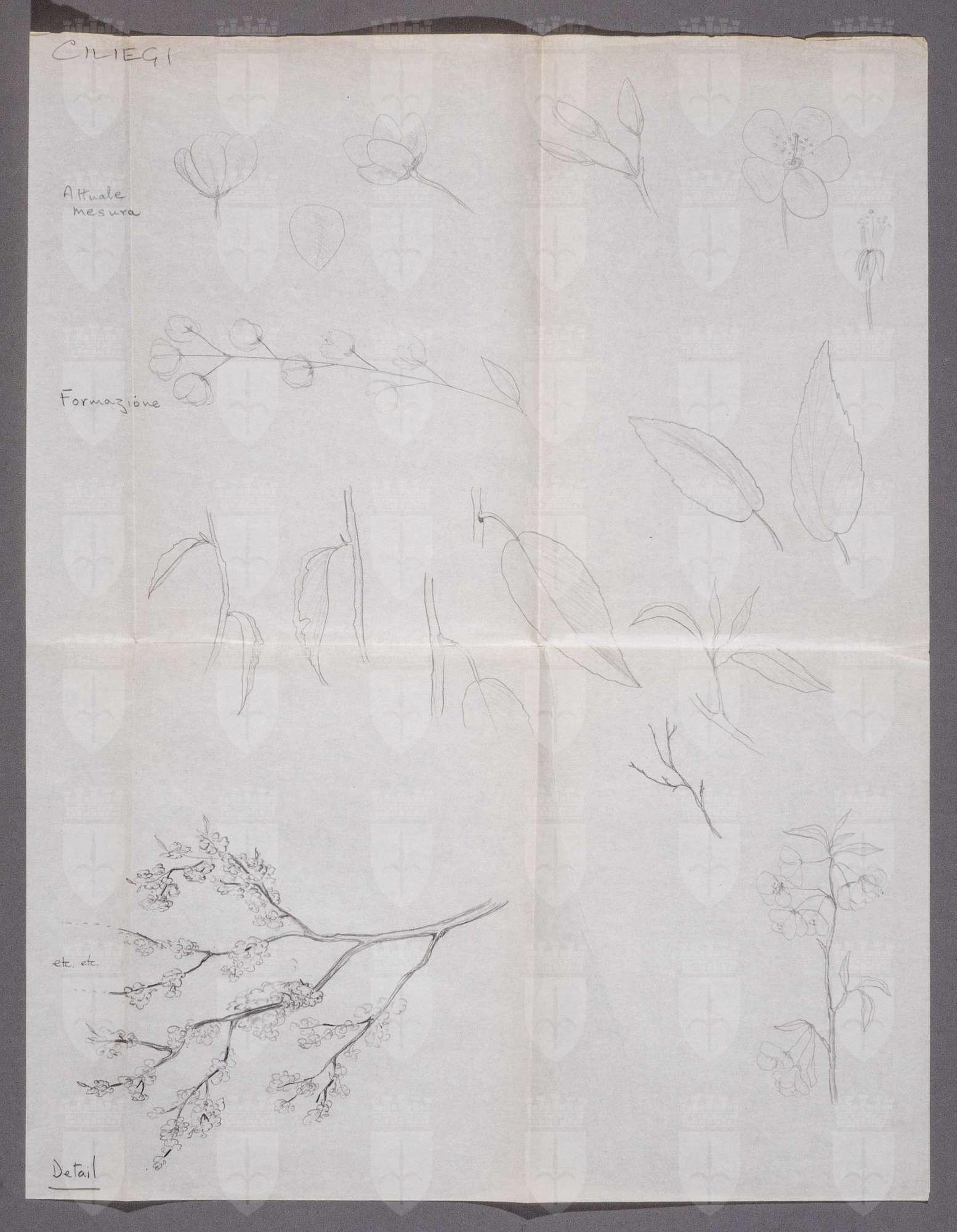 Il giardino dei ciliegi, di Anton Čechov. Studi per ciliegi: fiori, boccioli, petali, foglie, rami nudi, rami con foglie, rami con foglie e fiori.