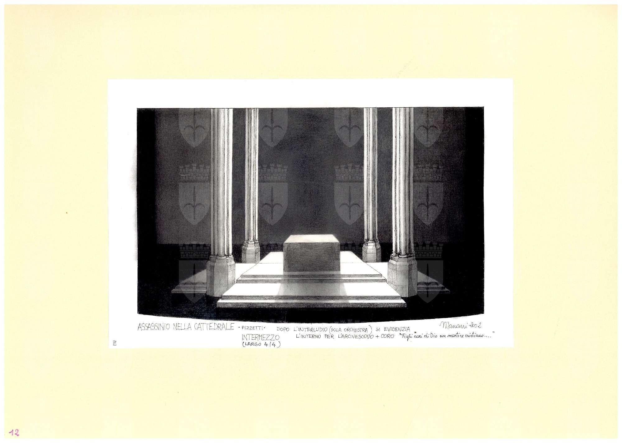 Assassinio nella Cattedrale di Ildebrando Pizzetti. Scenografia per l'atto 1.