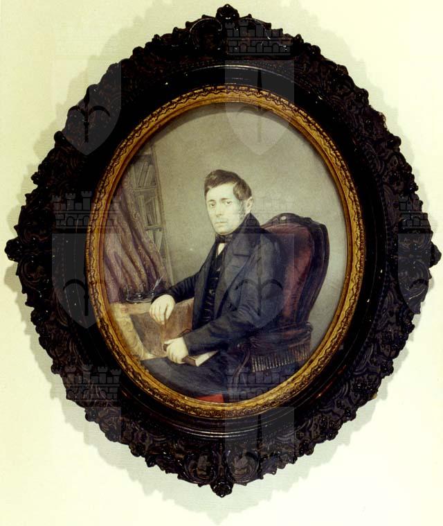 Pervenuto nelle collezioni civiche nel 1927 attraverso acquisto Garzolini, il ritratto di ridotte dimensioni è tradizionalmente censito come effige di un gentiluomo della famiglia Preinitsch. A tergo della cornice, vi è un’etichetta dello studio fotografico di Giuseppe Malovich (Budapest, 1823- notizie fino al 1874), litografo e fotografo, attivo a Trieste in Corso, 665 dal 1857 al 1864, nel cui ambito potrebbe essere stata elaborata l’opera, originariamente censita come “fotografia dipinta a uso miniatura”.