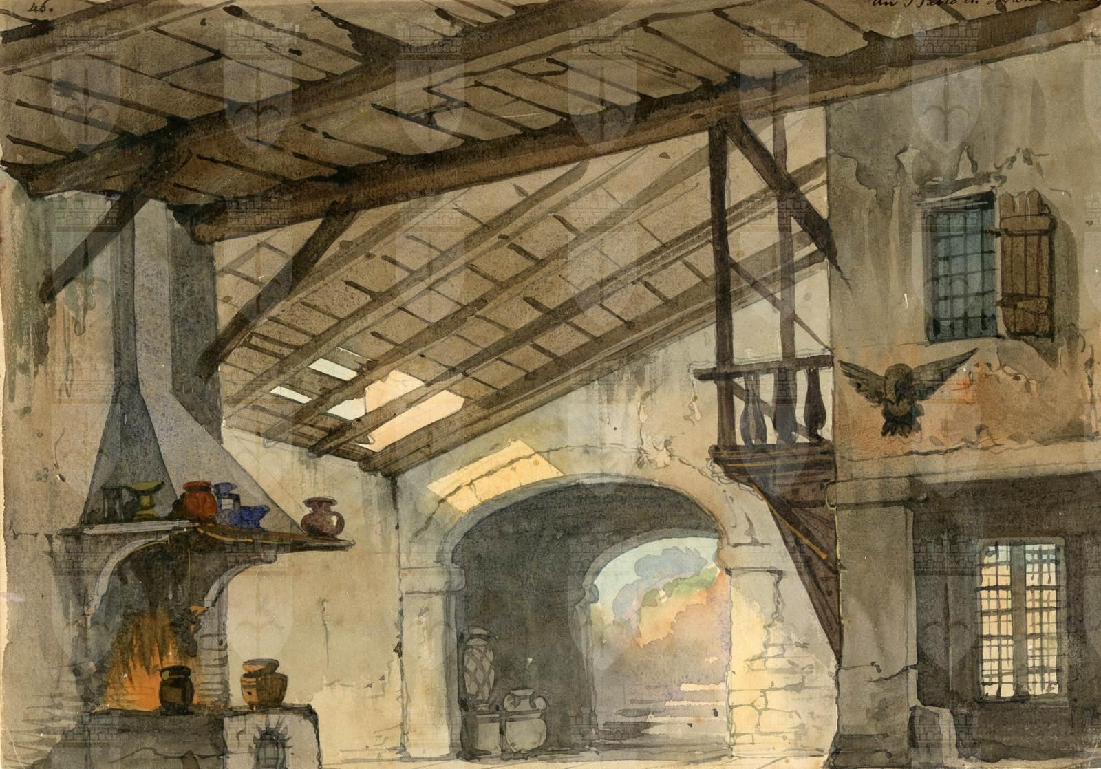 Un ballo in maschera, opera di Giuseppe Verdi,1. atto, 4. scena, interno di abitazione