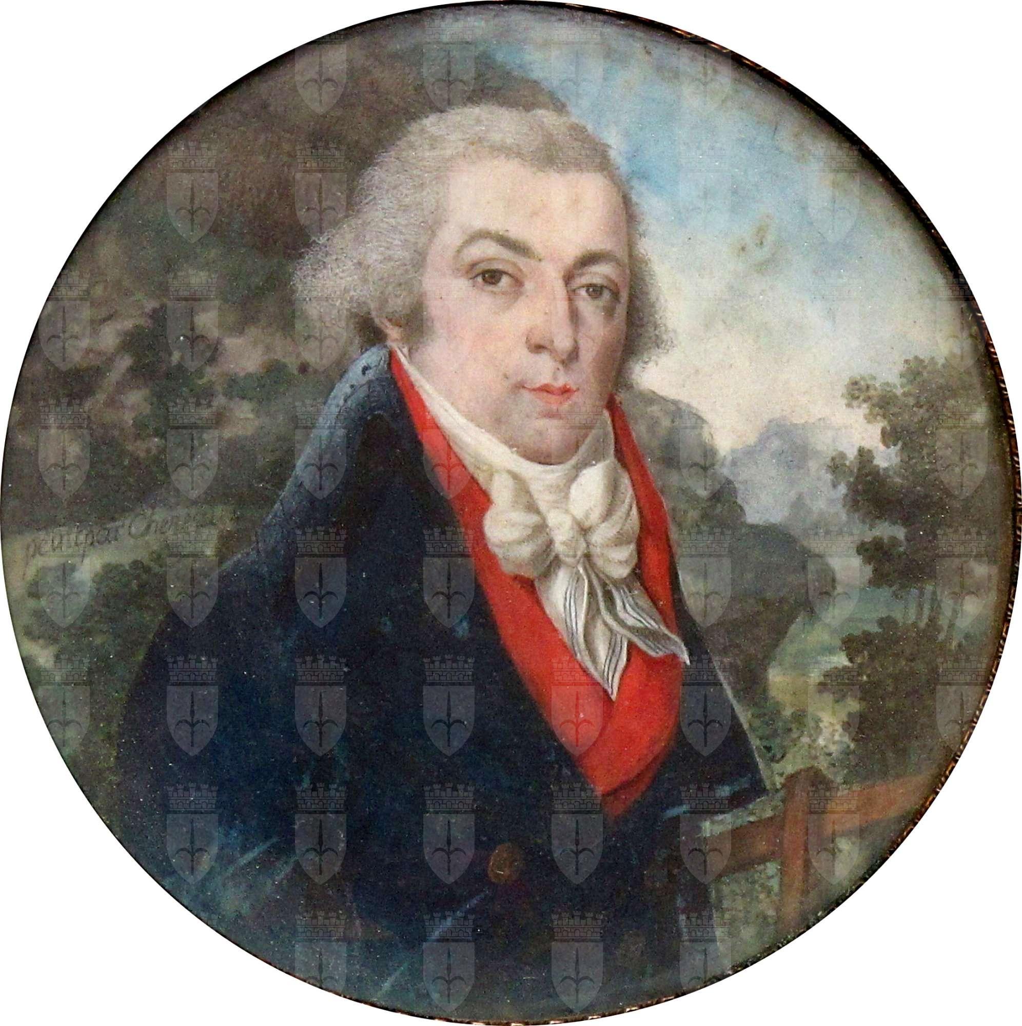 Della miniatura non è nota la data di ingresso nelle collezioni civiche. Essa è firmata da Chereau, miniaturista la cui identità non è stata ancora chiarita. Nei repertori si registrano un Jacques-Antoine Chereau (Parigi, 1742-1794); un Chereau, pittore e incisore parigino, registrato negli archivi della massoneria francese, attivo nel 1805; e infine Antoine-Guillaume Chéreau (1759-?), pittore di Vienna attivo a Parigi, dove nel 1781 si iscrive come allievo di M. Lépicié all’Accademia (Schidlof 1964, I, p. 144; Lemoine-Bouchard 2008, p. 158). A quest’ultimo è stata attribuita un’effige di Ufficiale della marina in rendigote blu e colletto rosso, recentemente passata in asta (ArtCurial 27 settembre 2023, lotto 671).