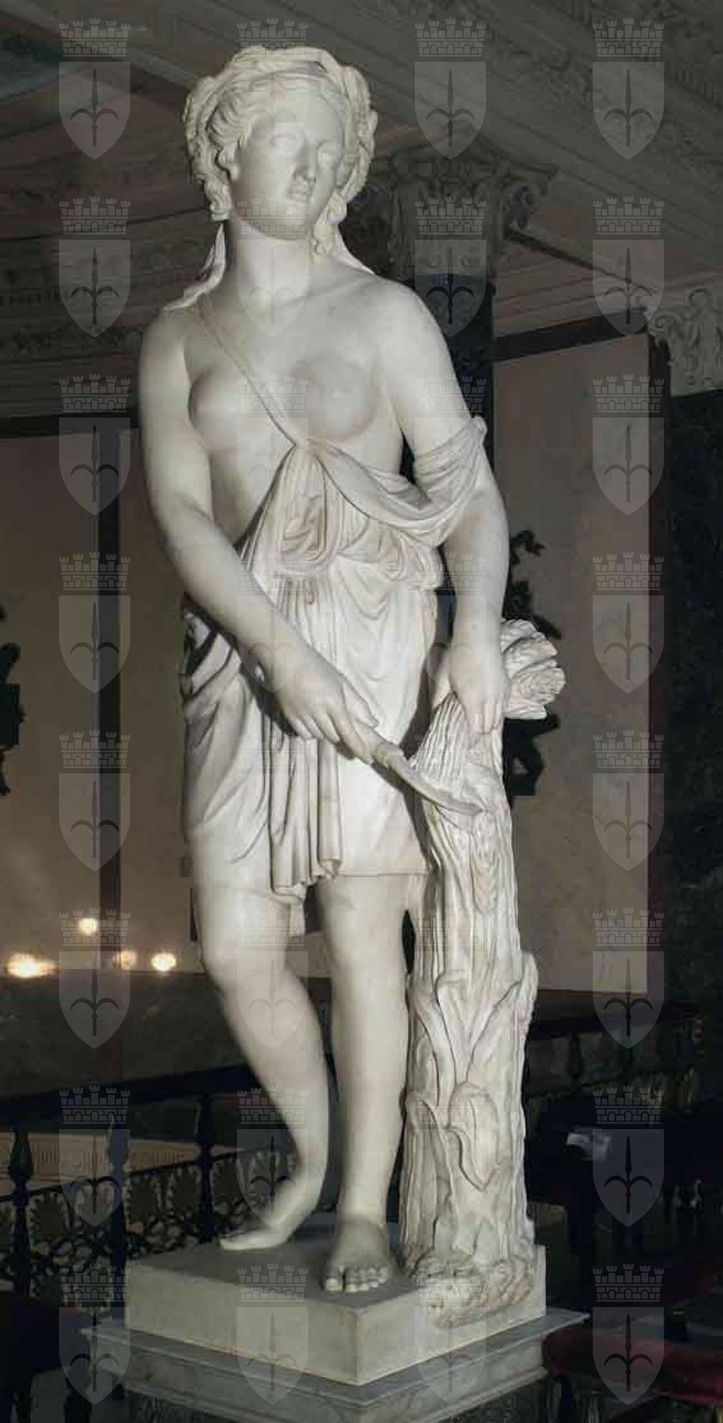 La figura allegorica dell’Estate porta la firma di Adriano Bertolucci, erroneamente scambiato per Antonio, scultore di cui si sa ben poco, se non che appartenesse ad una famiglia di statuari carraresi (Giovanni Antonio, Filippo, Lorenzo Bertolucci), che nel 1808 erano aiuti alla Scuola di Scultura della Banca Elisiana diretta da Lorenzo Bartolini presso l’Accademia di Carrara. Adriano si iscrisse alla stessa scuola nell’anno accademico 1845-46 e la frequentò per un decennio circa. In quel periodo la produzione scultorea carrarese risentiva ancora fortemente dell’impronta neoclassica, prediligendo lo studio della statuaria antica sui modelli viventi: la figura femminile rappresentante l’estate, una giovane seminuda che miete il grano, sembra infatti più una divinità greca che una giovane contadina al lavoro. L’opera viene citata, assieme alle altre tre sculture situate nel vestibolo del secondo piano del Palazzo di Pasquale Revoltella, nella guida Tre giorni a Trieste del 1858: «Quattro grandiose statue ai lati, in marmo di Carrara, rappresentano le quattro stagioni, e sono lavorate dagli allievi di quell’accademia, sotto la direzione del prof. Bonani, sui modelli di Canova, di Thorwaldsen, di Tenerani». Proprio di quest’ultimo era stato allievo Pietro Magni a Roma, e questo induce a pensare, che lo scultore milanese abbia giocato un ruolo nella scelta delle sculture in marmo fatta da Revoltella per il piano nobile della sua abitazione. Rispetto alle altre statue del gruppo, l’opera di Bertolucci, che pur dimostra di aver acquisito consapevolezza e una certa maturità nell’esecuzione, appare piuttosto rigida.