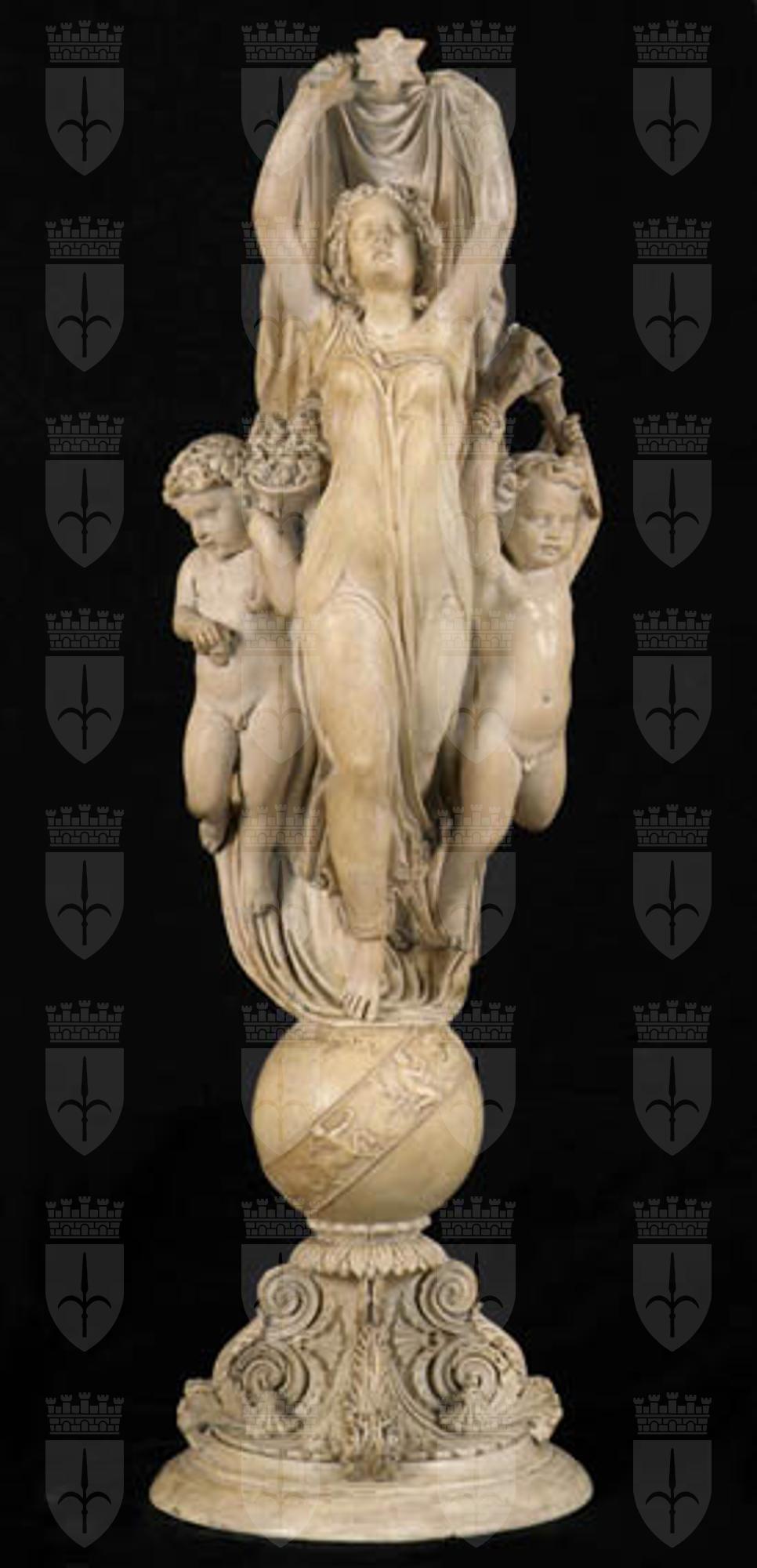 Citata negli inventari museali come Figura allegorica, la giovane donna che si svela, librandosi in aggraziato equilibrio sulla sfera celeste percorsa dalle costellazioni e con il capo ornato dalla stella mattutina, va identificata con Il Mattino. Costituisce una delle invenzioni più fortunate di Dankberg, presentata anche all’Esposizione Universale di Parigi del 1855 e conservata in diversi esemplari, tra cui quello della Nationalgalerie di Berlino (inv. B I 619) e del castello di Sanssouci a Potsdam (Skulpt.slg. 2459), dove è accompagnata anche dal pendant della Notte. La slanciata figura, finemente drappeggiata, è affiancata da due genietti alati, uno recante una cornucopia ricolma di rose, attributo dell’aurora, e l’altro in atto di accendere due fiaccole, simboleggianti il giorno nascente. Dankberg fu il fondatore nel 1843 a Berlino di un atelier di decorazione architettonica, che collaborò con i principali architetti berlinesi, tra cui Friedrich Hitizg, per il quale realizzò, tra l’altro, l’ornamentazione per la Nuova Borsa di Berlino. Come già ipotizzato (Crusvar), l’ingresso del Mattino nella collezione Revoltella va messo in relazione con l’ambiente di Hitzig. In occasione di questa ricerca è stato possibile attribuire a Dankberg la paternità degli stucchi decorativi di Palazzo Revoltella, cui lavorò con tutta probabilità a partire dall’aprile del 1856, quando arrivò a Trieste al seguito di Hitzig («Il Diavoletto» 1856). A Dankberg vanno altresì ascritte le «quattro statue di terra cotta di Berlino rappresentanti l’Agricoltura, l’Orticoltura, la Pesca e l’Industria » (Boschetti), che ornano il parterre di Villa Revoltella ai piedi della grande serra, sinora prive di paternità. Si tratta in realtà delle allegorie di Raccolto, Concordia, Pesca e Operosità (Industria), ricordate tra le più fortunate realizzazioni di Dankberg e replicate più di 2.000 volte. Per analogia con gli oggetti in fusione di zinco prodotti dal suo Istituto di Berlino, potrebbero essere ascritti a Dankberg anche i «Due grandi vasi bronzo di Berlino figurati» dell’atrio di Palazzo Revoltella, nonché i «Quattro vasi bronzo di Berlino con giochi d’acqua» della Sala neopompeiana del secondo piano, come vengono citati negli inventari, e la fontana con la ninfa (forse la sua celebre Eco) nella serra di Villa Revoltella.