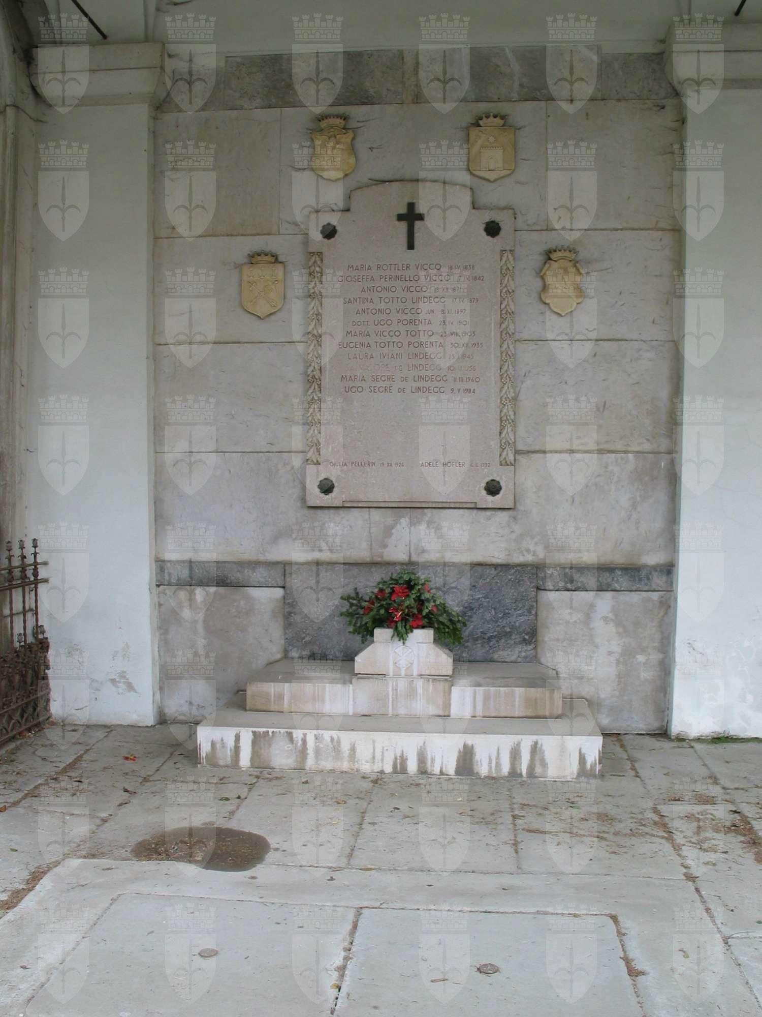 La tomba è stata concessa il 25.12.1871 a Antonio de Vicco ed il 31.03.1945 a Maria Segrè (Archivio Acegas APS).