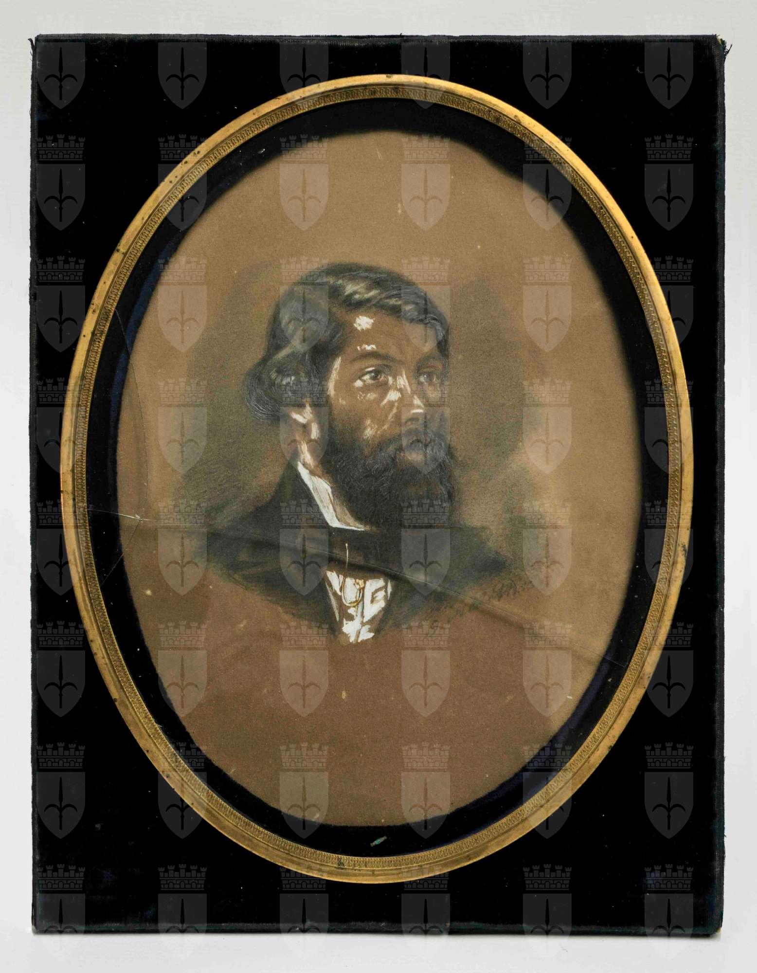 Il disegno ritrae Luigi Capodaglio, primo allievo noto di Giuseppe Tominz, che partecipò alla Terza esposizione triestina di Belle Arti, nel 1831, con tre ritratti e quattro vedute prospettiche (Osservatore triestino, 10 novembre 1831, pp. 278-279). In seguito preferì calcare i palcoscenici dei teatri e nel 1856 fece comporre un monologo, L’artista drammatico e il pittore, dedicato al suo maestro, che aveva fatto ritorno nella natia Gorizia (Quinzi 2011, p 64). Pervenuto nelle collezioni civiche attraverso acquisto nel 1935 da Eugenio Garzolini, il ritratto è ascrivibile, per la firma in basso a destra, a G. Alboth, da riconoscere con tutta probabilità nel disegnatore e incisore Gustav Robert Alboth (Lipsia, 1817-1872).
