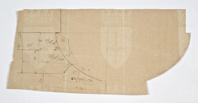 Si tratta di uno dei disegni progettuali del Faro della Vittoria, eseguiti da Arduino Berlam, che li donò ai Civici Musei di Storia ed Arte nel 1935, cfr. le schede da CMSAOAR06_3598 a CMSAOAR06_3634. In particolare, esso riguarda verosimilmente un dettaglio esterno della struttura. Quanto alle vicende storico-critiche del Faro della Vittoria, si rinvia alla scheda CMSAOAR06_3598.