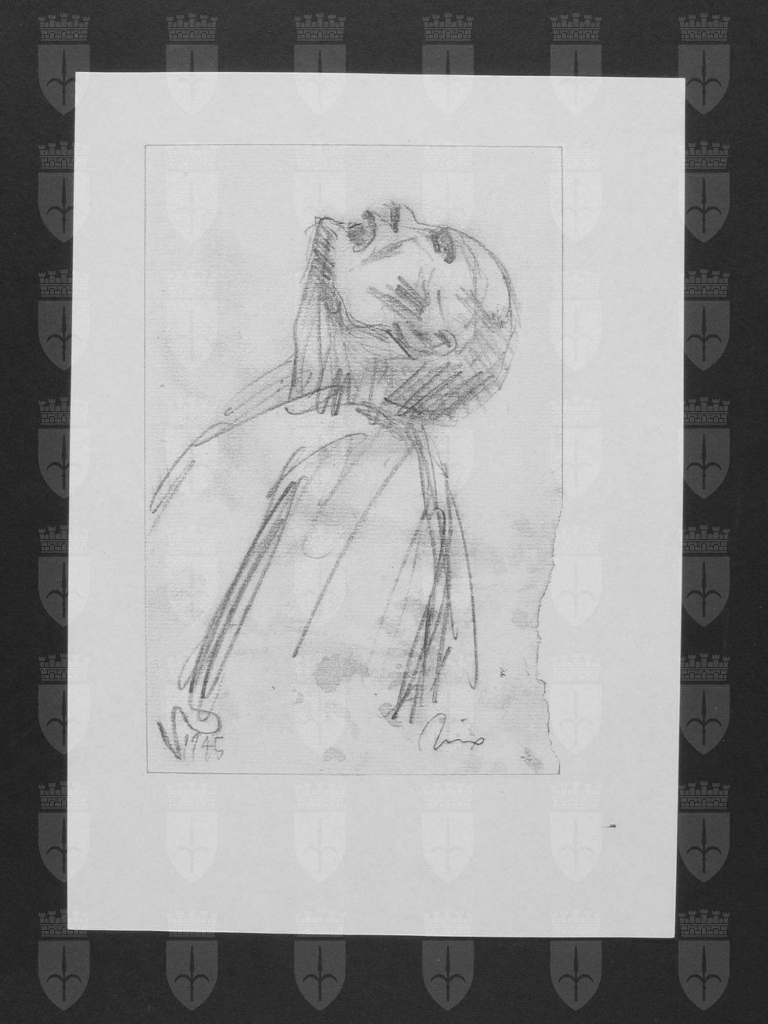 Giovanni Talleri (Trieste 1922 - 2010) fu arrestato nell'estate del 1944 e deportato nel campo di concentramento di Mühldorf, un sistema satellite del campo di Dachau, in Germania, da qui trasferito a Strub, da dove riuscì a evadere e da lì a ritornare nella sua città natale. Nelle settimane successive il rientro a casa, ha realizzato questa serie di disegni a matita in cui ha rappresentato quanto ha visto durante la prigionia: i portatori di cemento, le guardie, le donne russe, i prigionieri ebrei e quelli della Straf-Kolonne di Mühldorf. Con pochi tratti di matita, Talleri rende l'enorme sofferenza di questo prigioniero. Sul verso del disegno, in basso a destra, c'è il timbro “GIOVANNI TALLERI / Via Crispi, 14 – 34125 Trieste / ITALIA – Tel. 638707 – 638706”.