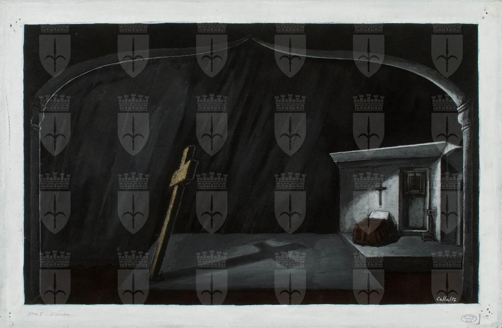 Bozzetto scenografico per I dialoghi delle carmelitane, opera di Francis Poulenc, prima rappresentazione 23 novembre 1957, Teatro Comunale Giuseppe Verdi Trieste, regia di Franco Enriquez