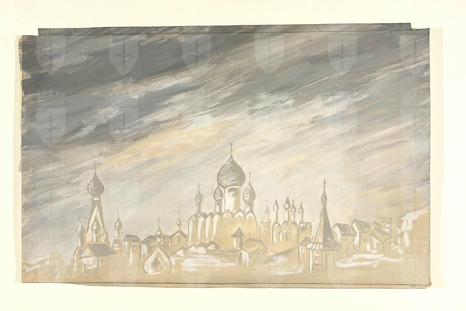 Bozzetto scenografico per Pskovitianka (Ivan il terribile), opera di Nikolaj Andreevič Rimskij-Korsakov, prima rappresentazione 13 gennaio 1968, Teatro Comunale Giuseppe Verdi Trieste, regia di Mladen Sablic