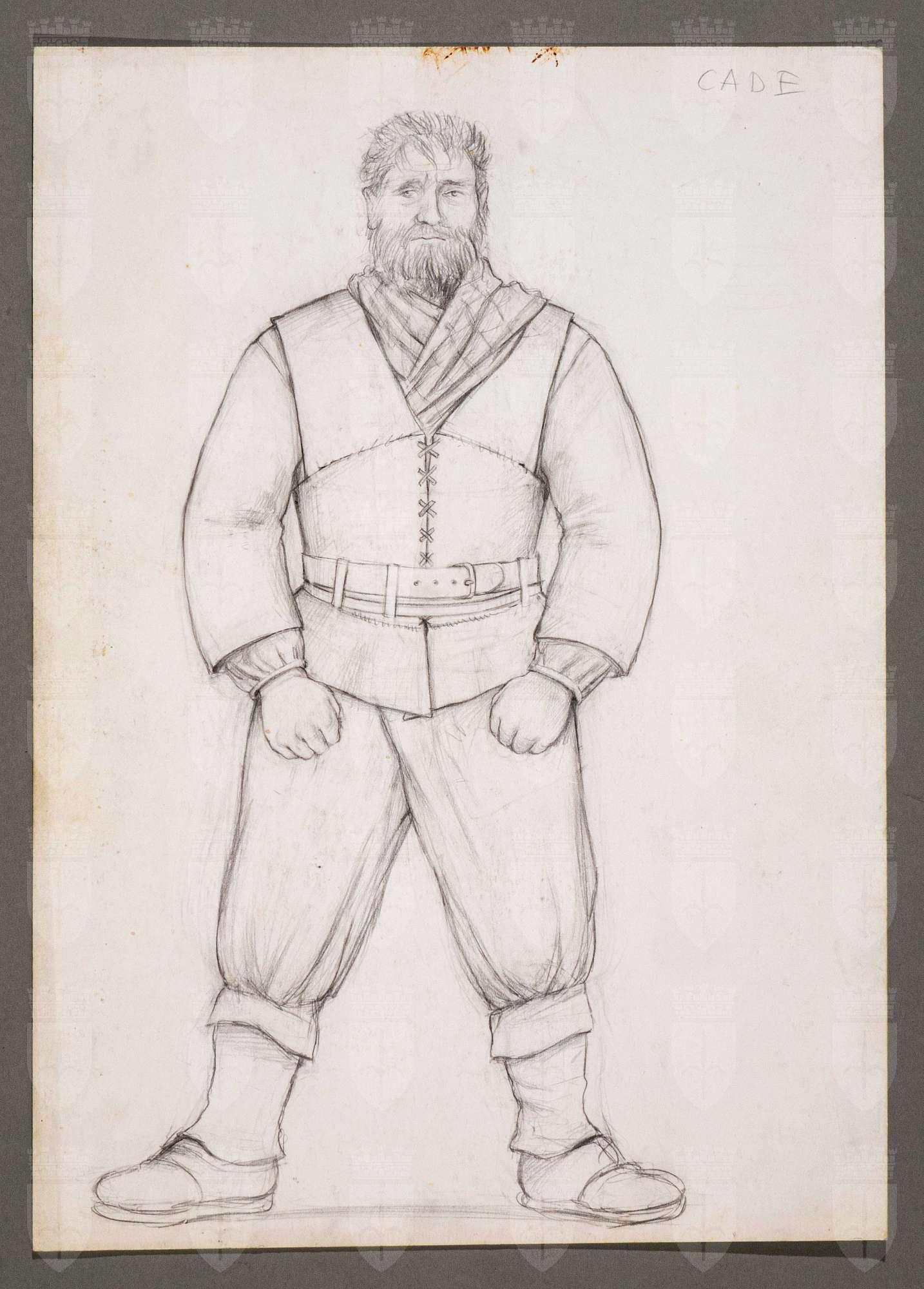 Il gioco dei potenti, libero adattamento di Giorgio Strehler da Enrico VI, dramma storico di William Shakespeare, in 15 atti e 2 giornate. Figura maschile in piedi, di fronte, a capo scoperto e capigliatura disordinata, indossa una sciarpa, casacca chiusa in vita da una cintura, ampie brache al ginocchio, ghette alte.