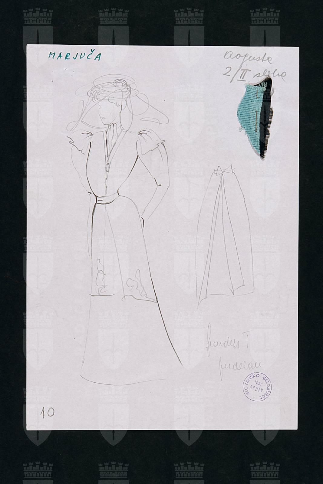 La coscienza di Zeno (Zenova Izpoved), di Italo Svevo nel rifacimento scenico di Tullio Kezich. Costume per Augusta. Figura femminile intera, gonna lunga, soprabito corto abbottonato sul davanti, veletta