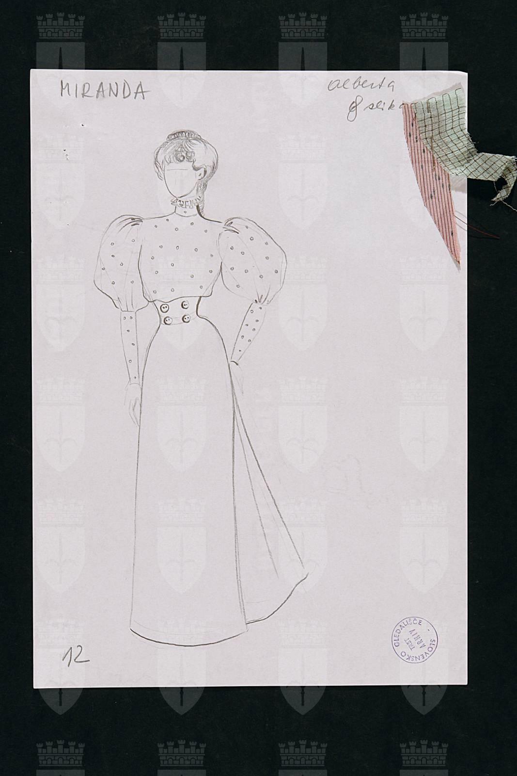 La coscienza di Zeno (Zenova Izpoved), di Italo Svevo nel rifacimento scenico di Tullio Kezich. Costume per Alberta. Figura femminile intera, gonna lunga con 4 grandi bottoni in vita, camicia ampia a pois