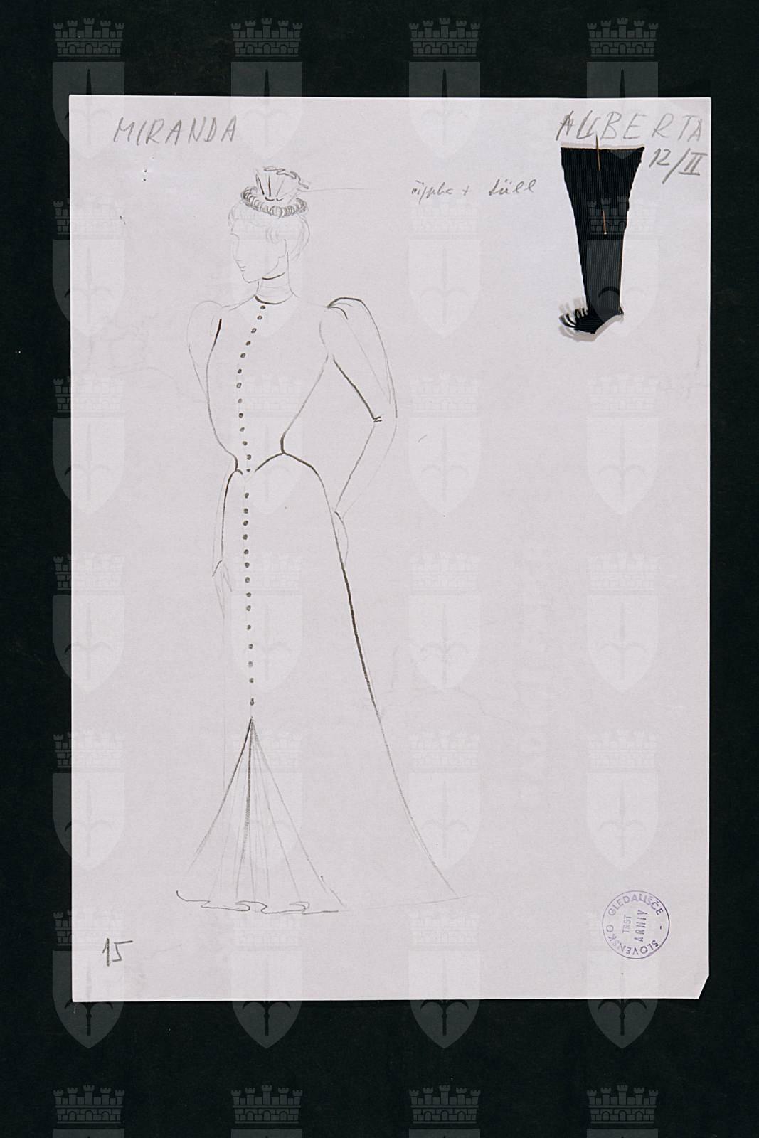 La coscienza di Zeno (Zenova Izpoved), di Italo Svevo nel rifacimento scenico di Tullio Kezich. Costume per Alberta. Figura femminile intera, lungo soprabito abbottonato sul davanti, cappellino