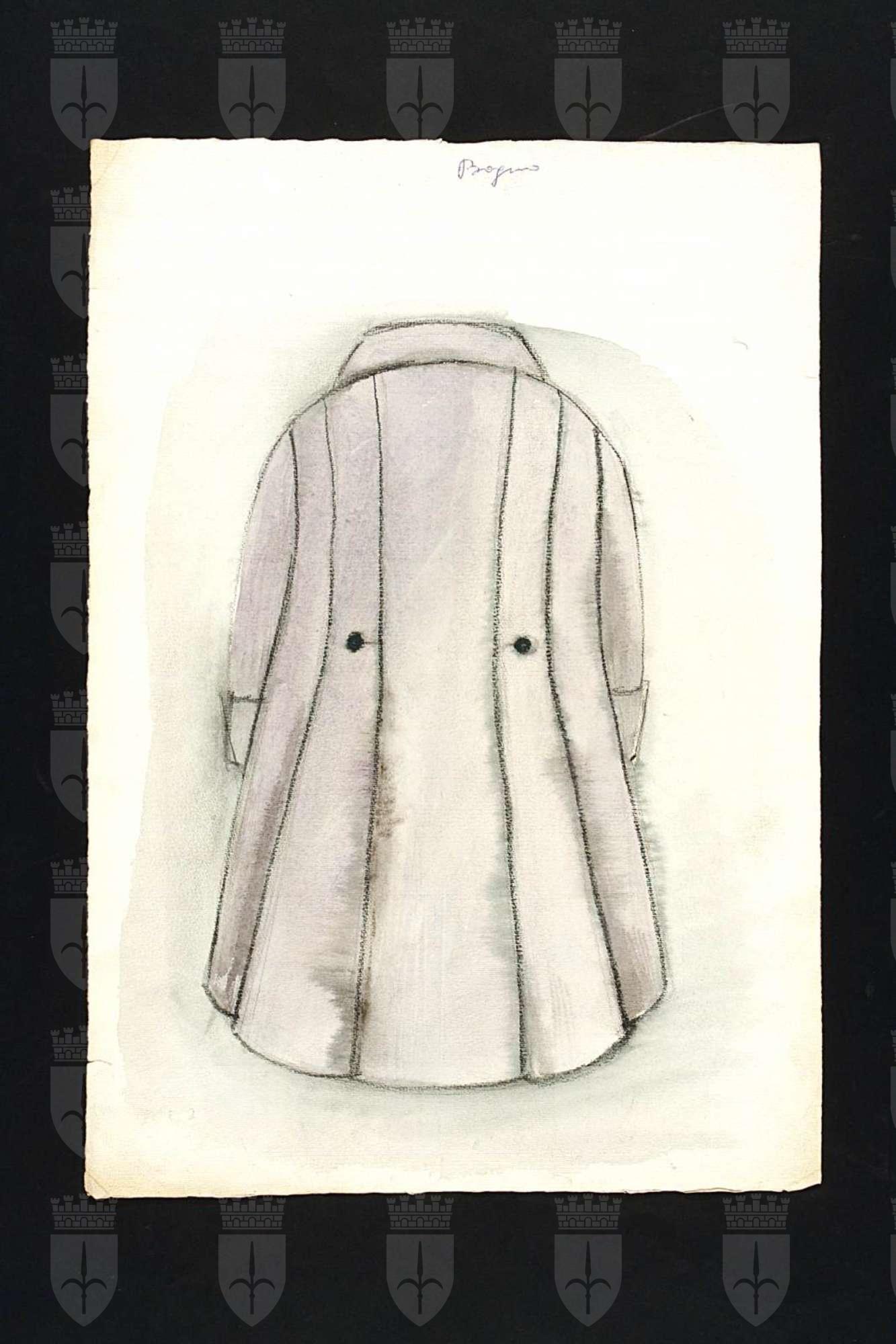 La cagnotte, testo teatrale di Eugène Labiche. Figurino di giacca per Colladan. Redingote grigio chiaro vista da dietro (vedi CMT_OA_4_000408)