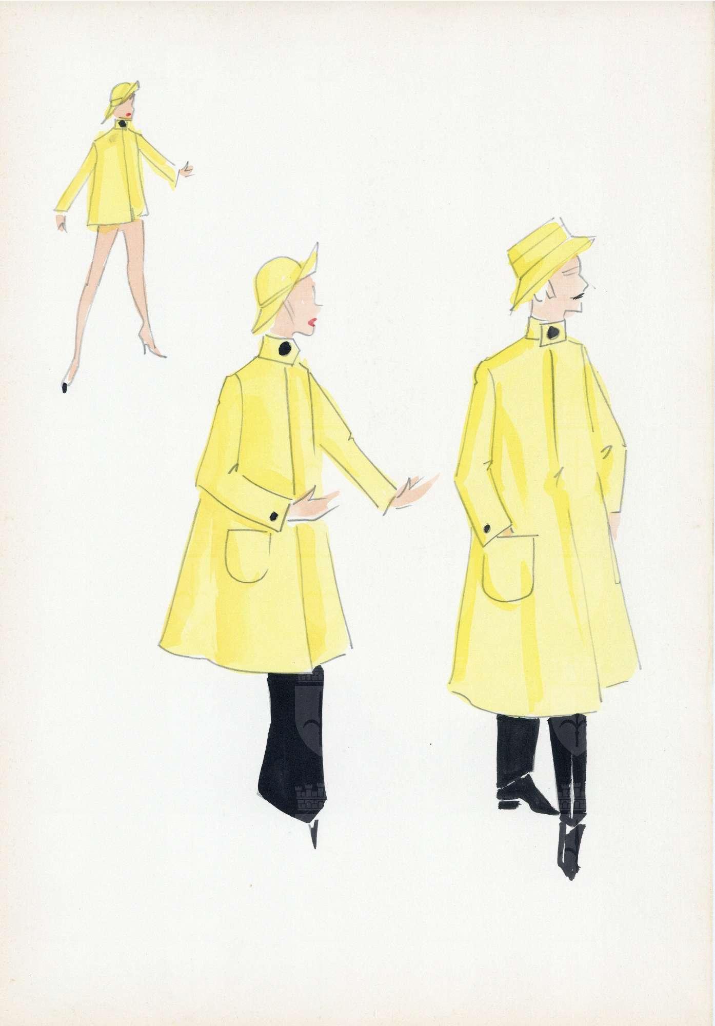 La duchessa di Chicago, operetta di Emmerich Kàlmàn, Figura femminile intera, ambientazione Regno di Silvaria, Vienna, 1920-30. Indossa abito grigio scuro stile Charleston lungo fino al polpaccio, mezze maniche a lembi sovrapposti, cuffia con pendenti con perline, cintura ribassata, decorazioni in passamaneria, guanto al gomito. Decori e spallini neri