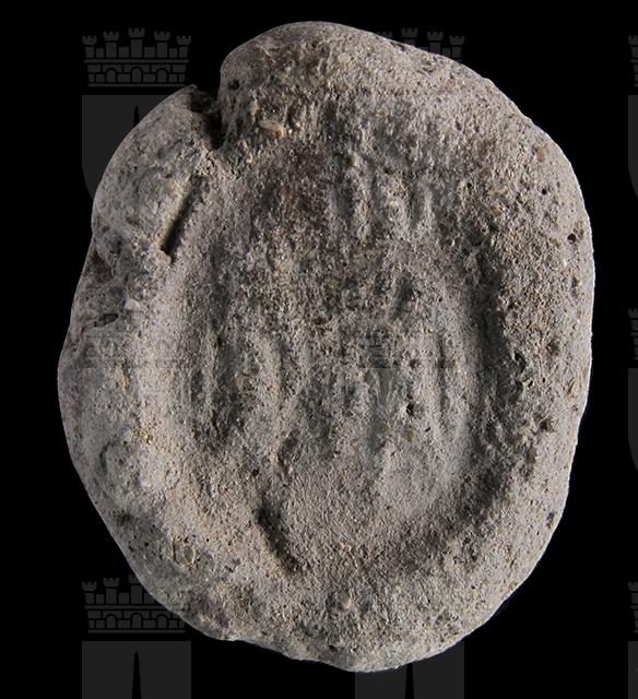 Impronta di un sigillo in argilla che raffigura due figure divine, di cui una con corona atef.