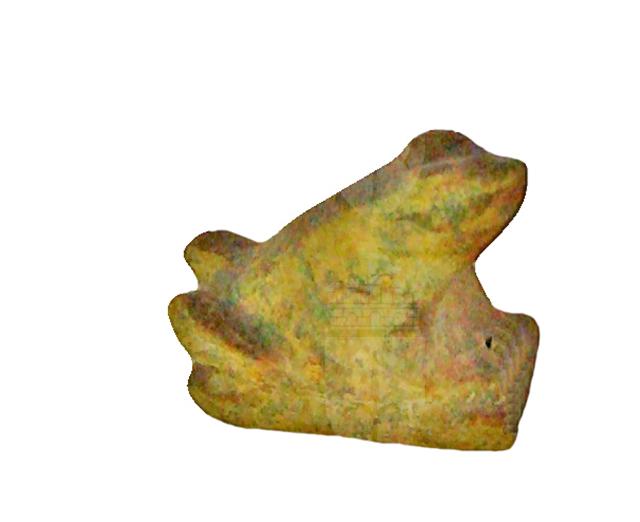 Amuleto in steatite lavorato a tutto tondo, raffigurante una rana che si appoggia su una piccola base; nonostante la minutezza dell'oggetto, la resa è abbastanza precisa e vivace.