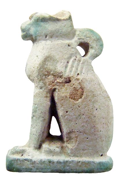Amuleto a forma di gatto con anello sulla schiena, dall'Egitto