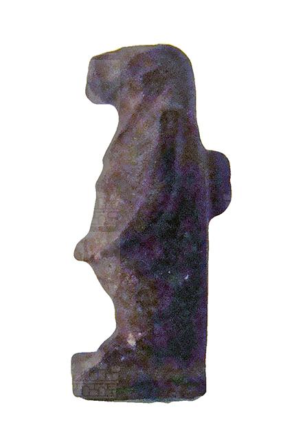 Amuleto in pietra raffigurante la divinità apotropaica Toeris, patrona delle partorienti e dei neonati. La dea è raffigurata in piedi, con il muso di coccodrillo, una lunga parrucca, il corpo da ippopotamo gravido, con le braccia distese lungo il corpo. I piedi poggiano su una base parallelepipeda, mentre il dorso con la coda da coccodrillo si fonde con il pilastro dorsale, sul quale vi è una presa non forata.