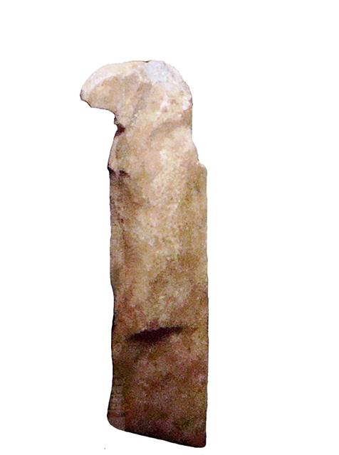 Amuleto in faience che raffigura il dio Thot, dio della sapienza e inventore dei geroglifici. In modo abbastanza schematico, il dio è raffigurato in piedi, nell'atto di camminare (ha la gamba sinistra in avanti); la testa è quella dell'ibis, suo animale sacro, caratterizzata dal lungo becco a forma di falce lunare (non particolarmente accentuato), con una parrucca che scende sul petto; le braccia sono stese lungo il corpo, con le mani chiuse a pugno; indossa un corto gonnellino. L'amuleto è spezzato all'altezza delle ginocchia; sul retro si sviluppa il pilastro dorsale, spezzato all'estremità superiore.