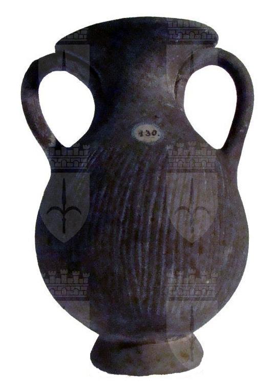 Pelike a corpo baccellato su piede a vernice bruna priva di sovraddipinture, risparmiata la parte inferiore