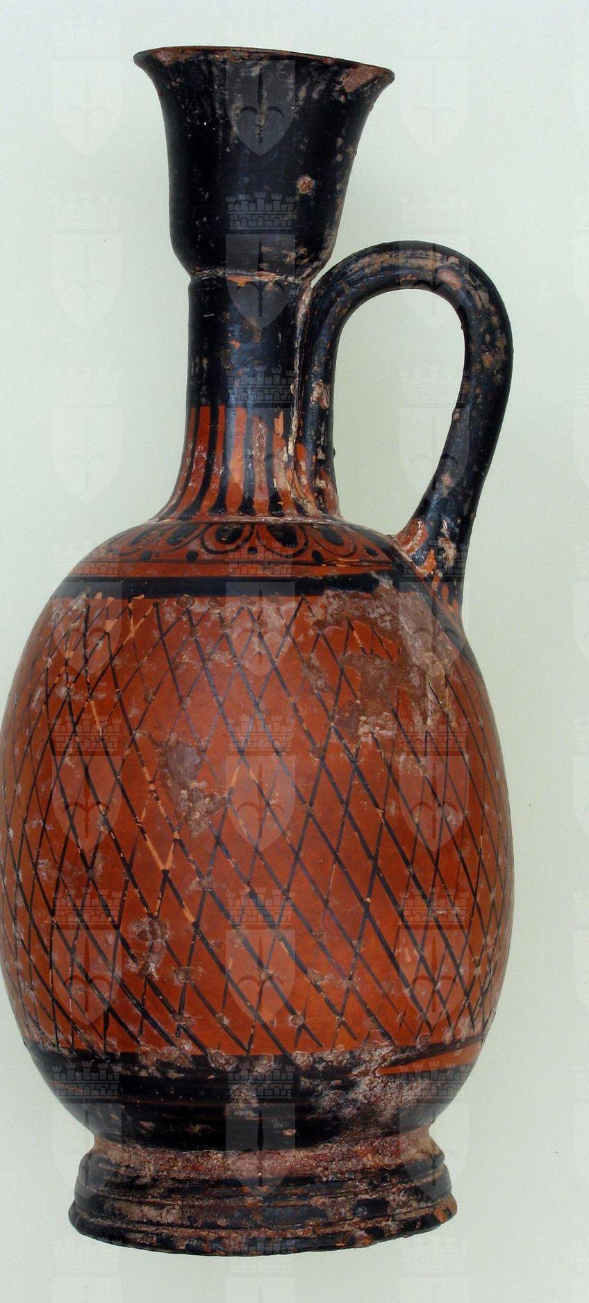 Lechythos apula a reticolato nero a punti bianchi e ovuli al collo.