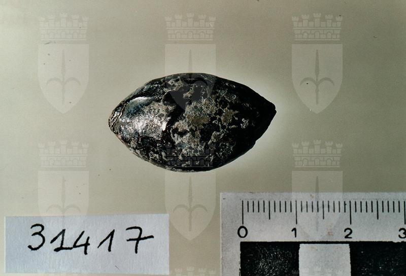 Ghianda anepigrafe, tipo Ic, forma ovoidale con patina scura.