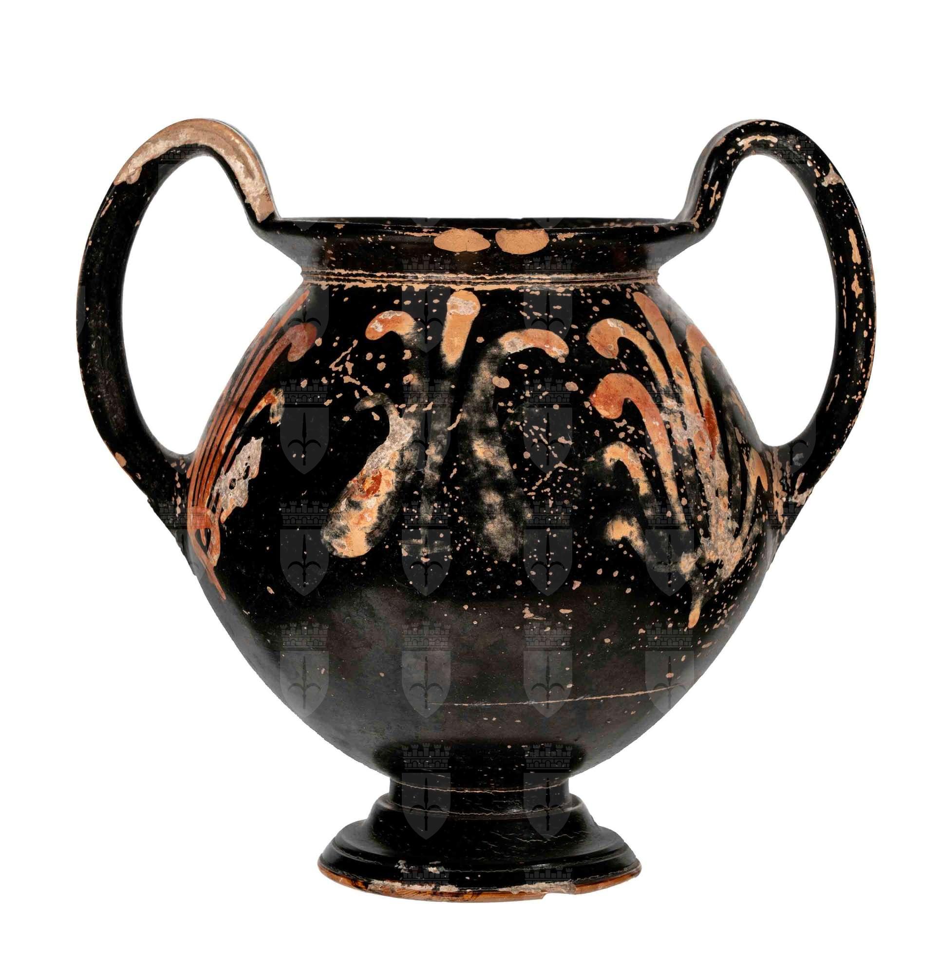 Vaso kantharoide a figure rosse con immagine di grifo in corsa tra viticci. Sull'altro lato palmette.