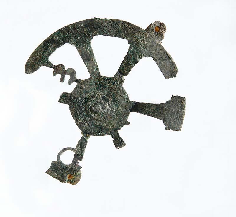Applicazione con chrismon a giorno in bronzo da San Canziano