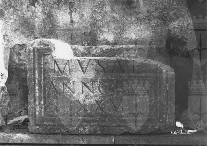 Urna rettangolare con fronte incorniciata e iscrizione a Musa, morta all'età di ventisei anni.