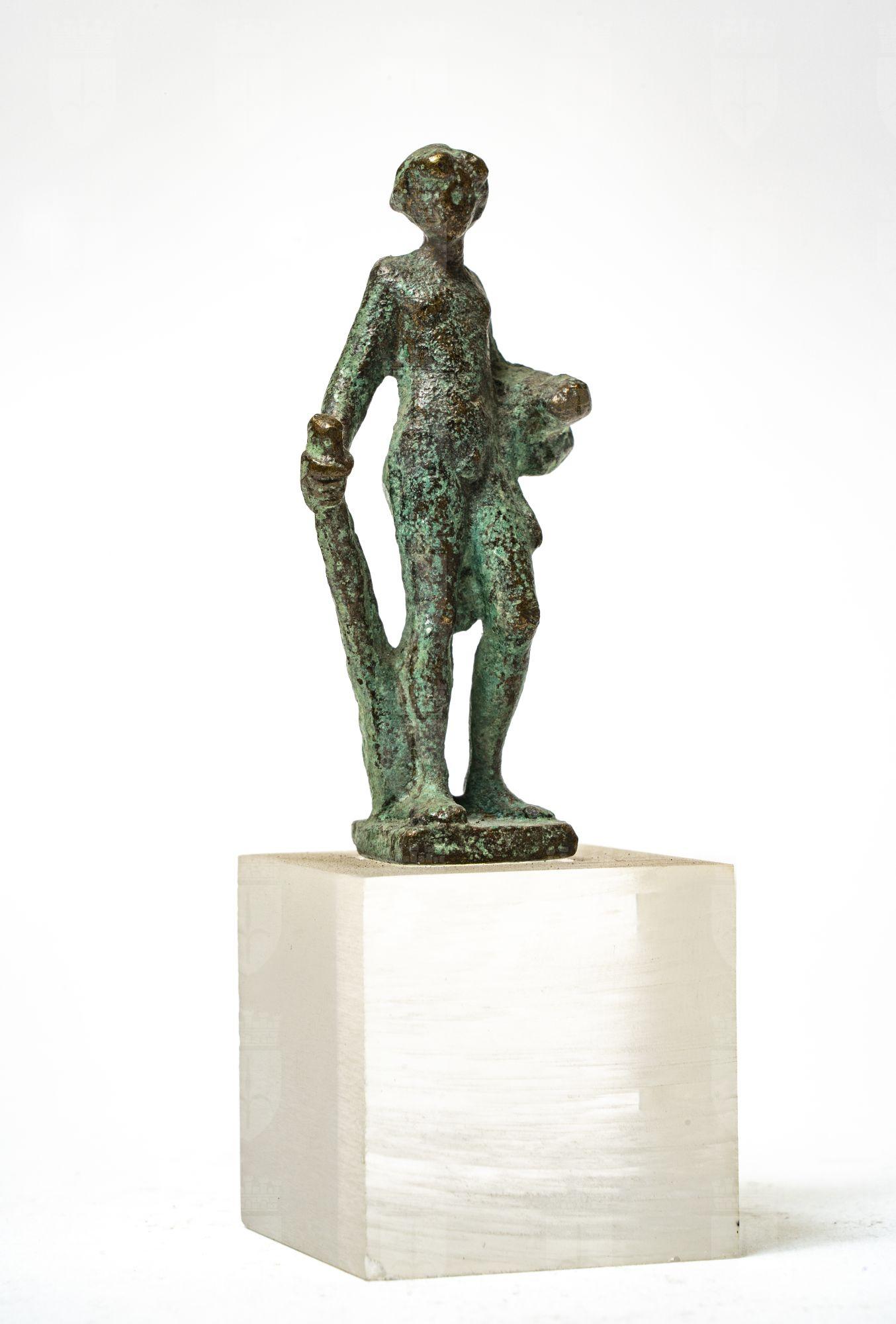Ercole ignudo con lunga clava su cui posa la mano destra. Sul braccio sinistro è avvolta la pelle di leone. Una piastrina di bronzo fa da base ai piedi.