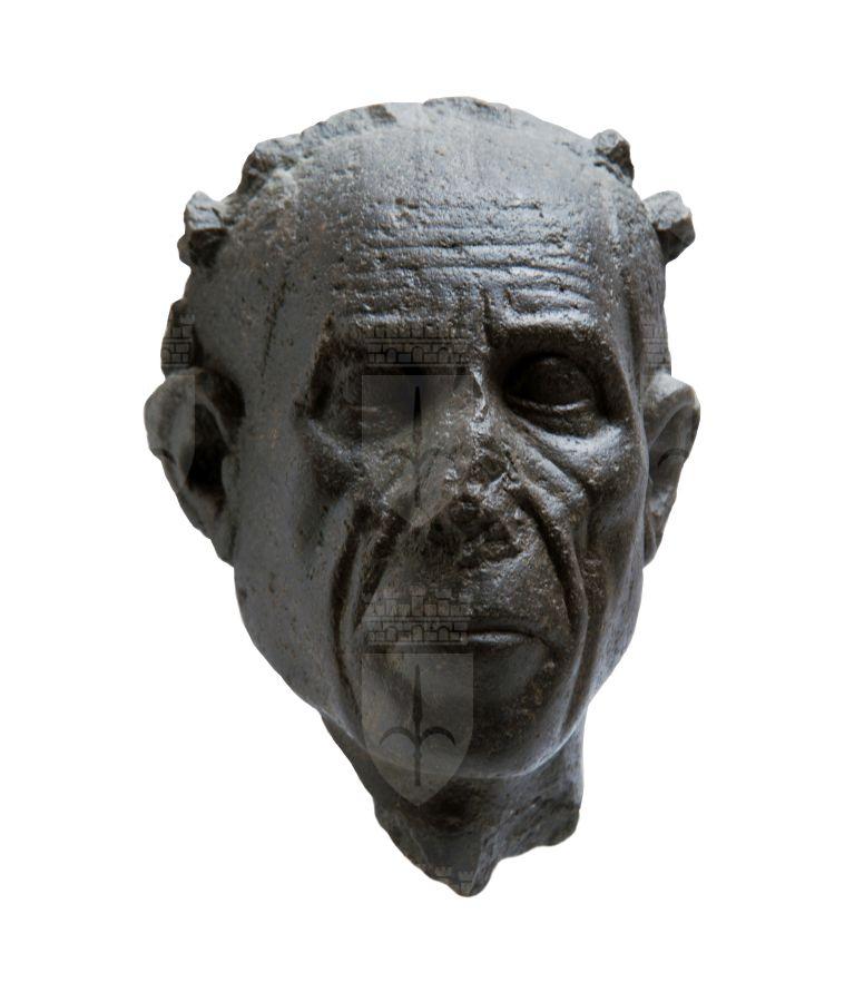 Il volto allungato ha i caratteri dell'età avanzata con la fronte solcata da rughe orizzontali incise e guance cavate con profonde pieghe che mettono in risalto gli zigomi. Gli occhi piccoli, leggermente a mandorla, hanno spesse occhiaie, mentre la bocca grande è serrata. Le orecchie emergono dalla calotta dei capelli che mostrano un'ampia stempiatura su cui poggia una coroncina di fiori. Sul retro rimane la parte superiore di un pilastro di sostegno. La testa rientra nel gruppo della ritrattistica dal forte realismo di periodo greco-tolemaico dall'Egitto del pieno I secolo a.C.