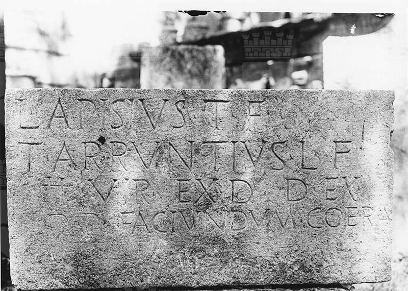 L(ucius) Apisius T(iti) f(ilius), | T(itus) Arruntius L(uci) f(ilius), | IIvir(i), ex d(ecurionum) d(ecreto), ex | p(ecunia) p(ublica) faciundum coera(vere).