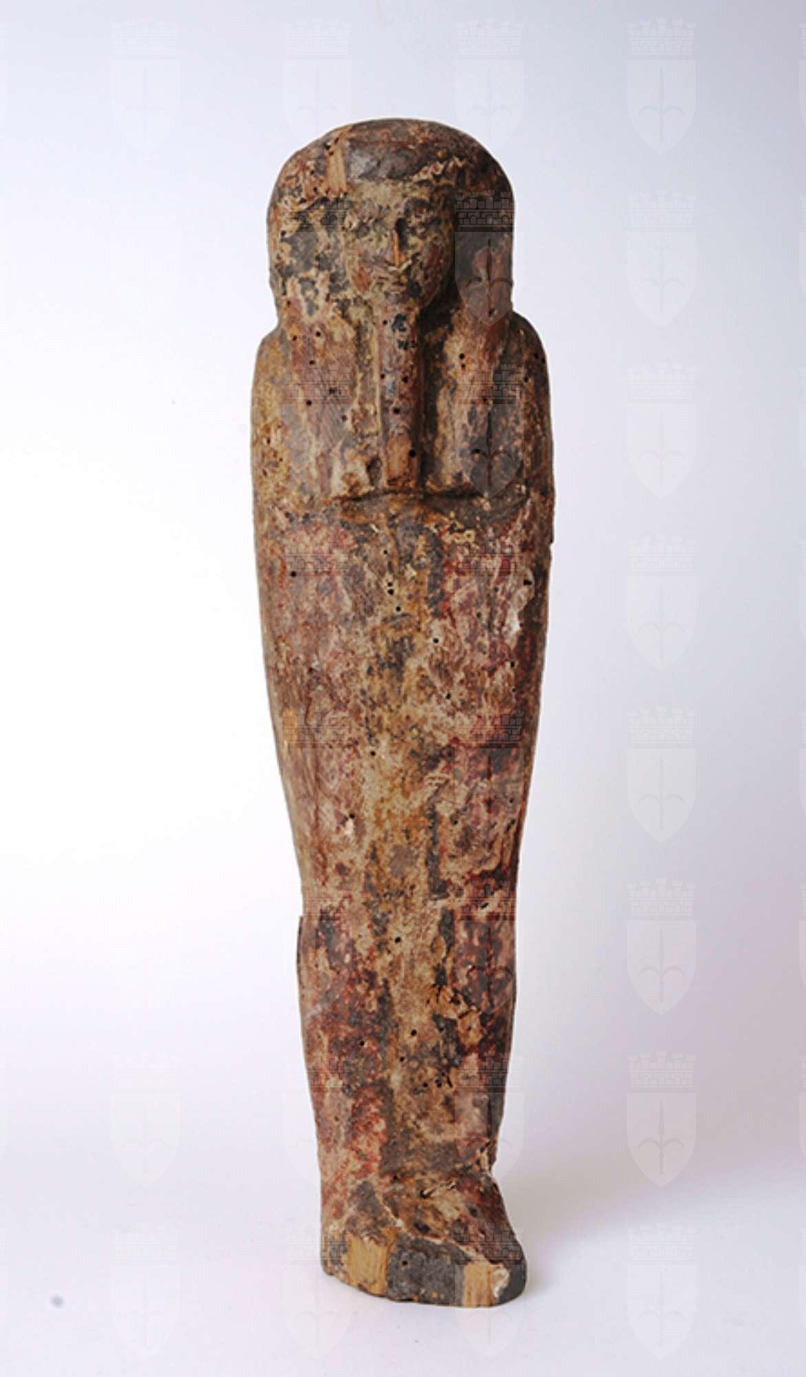 Della statua di Ptah-Sokar-Osiride rimane solo la grande figura mummiforme completamente avvolta nelle bende, con retro piatto. Emerge il volto dominato dalla parrucca, che ricadono in tre bande (due sul petto e una dietro le spalle). Sopra il capo si conserva parte del perno per l’applicazione della corona, che doveva essere anch’essa lignea, formata da due piume di struzzo con disco solare, poste su corna d’ariete orizzontali ondulate a manubrio, ora purtroppo perduta. Tutta la superficie doveva essere in origine decorata a vivaci colori, purtroppo andati perduti. Tali simulacri rappresentano il defunto, identificato nella divinità sincretica derivata dall’associazione di Ptah, Sokar e Osiride ed erano destinati a garantire la rinascita dopo la morte. Il museo conserva anche un altro esemplare di queste statue (inv. 39239), purtroppo molto rovinato.
