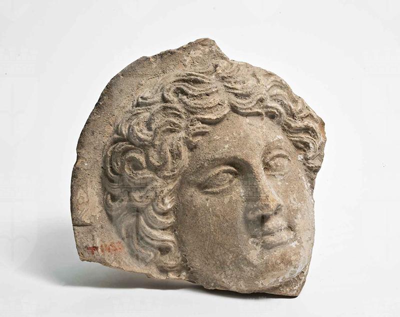 Argilla di color marroncino a causa delle incrostazioni, al di sotto color beige chiaro; in frattura argilla rossastra. Si conservano solo il volto e la chioma; proviene dalla stessa matrice dell'antefissa inv. 3805 (T.40).
