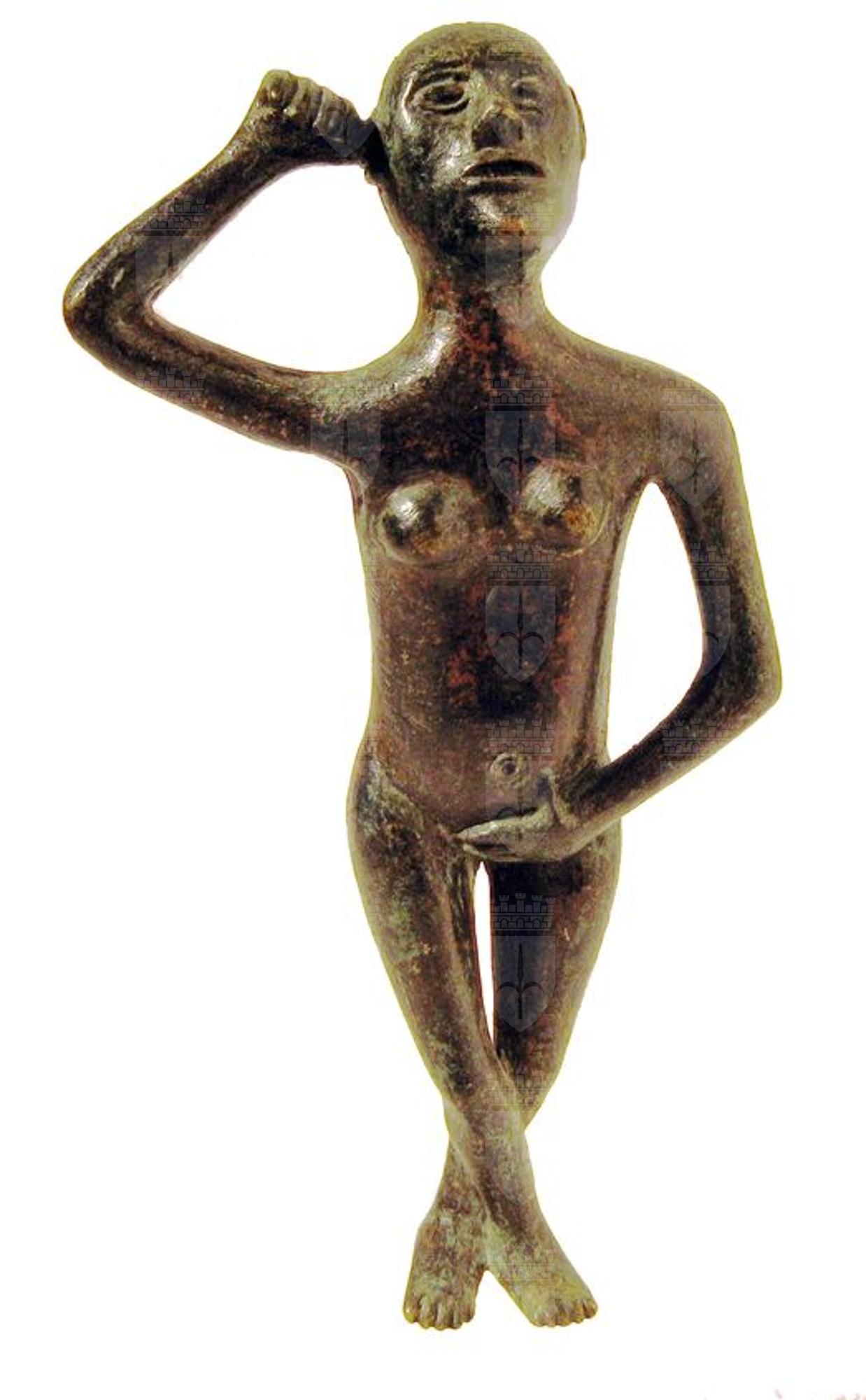 Figurina di donna nuda, in atteggiamento di Venere pudica. Testa ovale, leggermente sollevata. Il corpo è disarticolato e sproporzionato. Dato per falso.